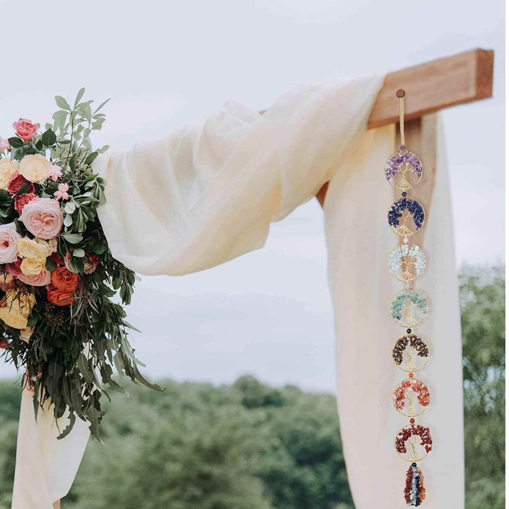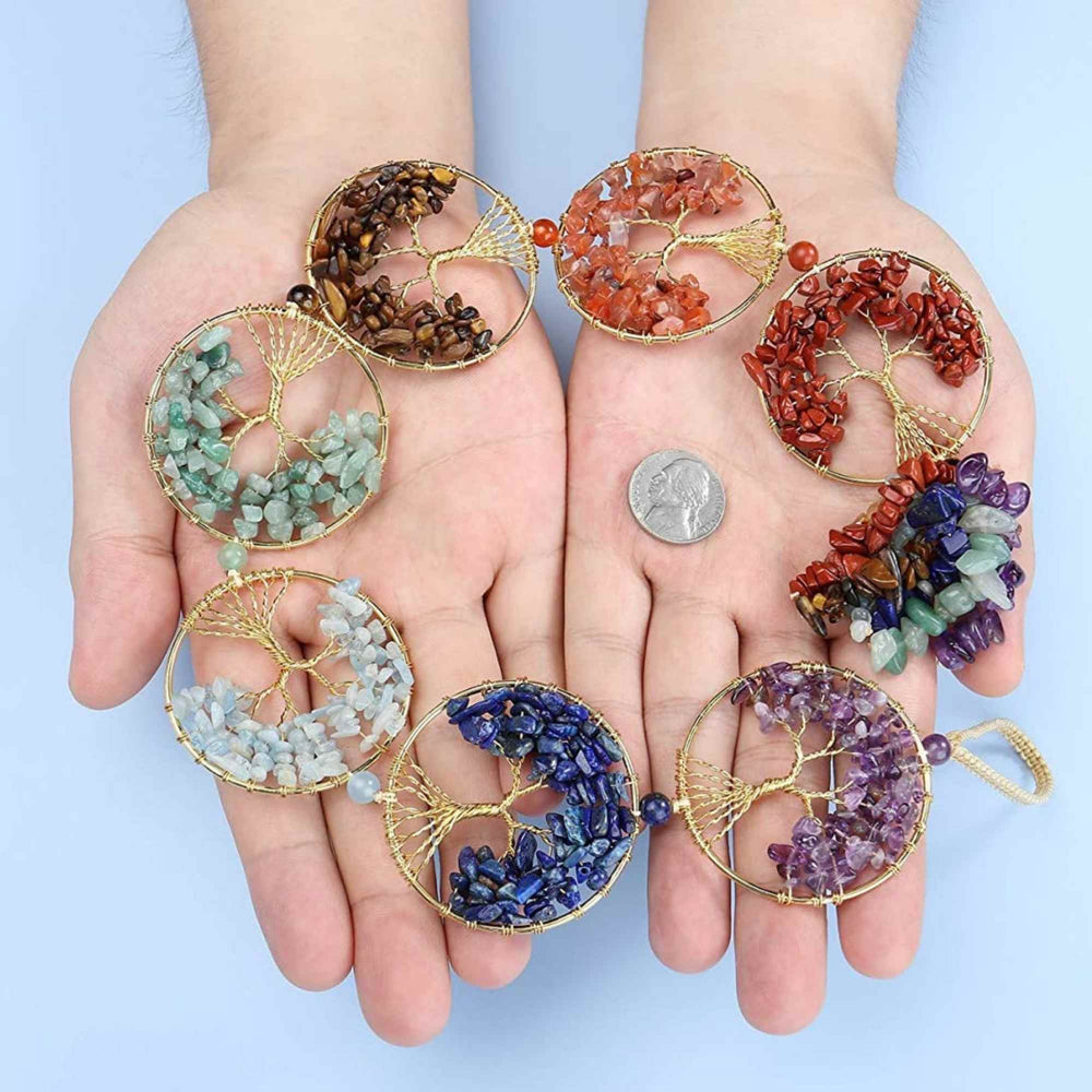 Ornament de agatat cu 7 chakre reprezentate cu arborele vietii lucrat manual cu pietre semipretioase si cristale vindecatoare - Ornament de meditatie, decor feng shui pentru casa, birou, masina