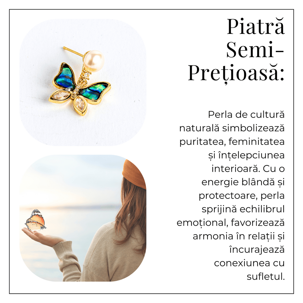 Bijuterie feminina cu simbolul transformarii – o combinatie eleganta intre perla si fluture, care transmite gingasie si energie creativa