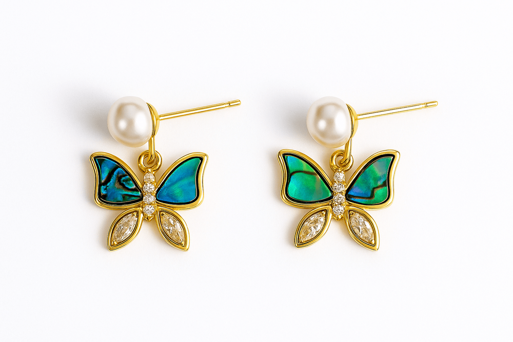 Cercei fluture cu perla naturala – Rafinament si renastere