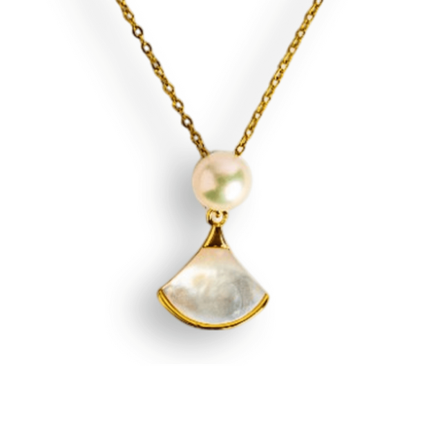 Colierul combină puritatea perlei cu energia blândă a scoicii, evocând calmul mării și reconectarea cu ritmul tău natural.