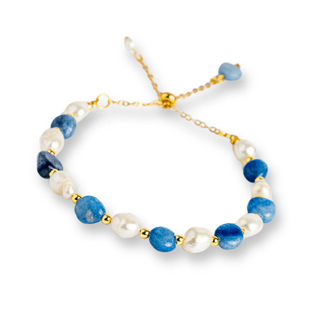 Poartă sau oferă un talisman elegant, menit să protejeze, să aducă limpezime în gândire și echilibru în suflet. Brățara cu aventurin albastru și perle este alegerea ideală pentru cei care doresc un plus de protecție și direcție în viață.
