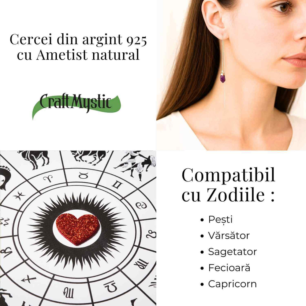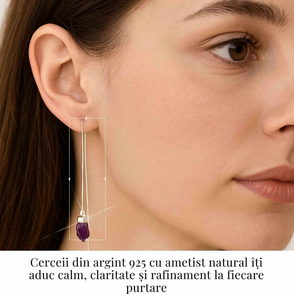 Atunci când porți acești cercei lungi din argint cu ametist, vei simți cum energia ta se stabilizează, gândurile devin mai clare și starea de spirit mai liniștită. Designul delicat adaugă un plus de eleganță oricărei ținute.
