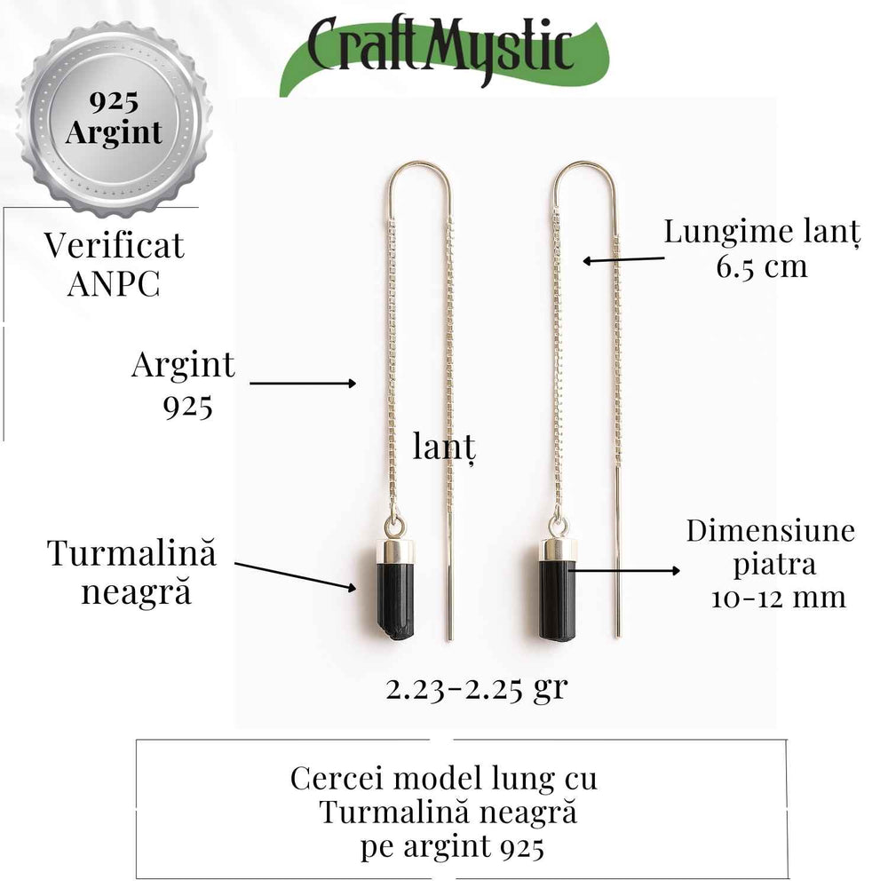 Cercei lungi din argint 925 cu turmalina neagra – Eleganta protectoare