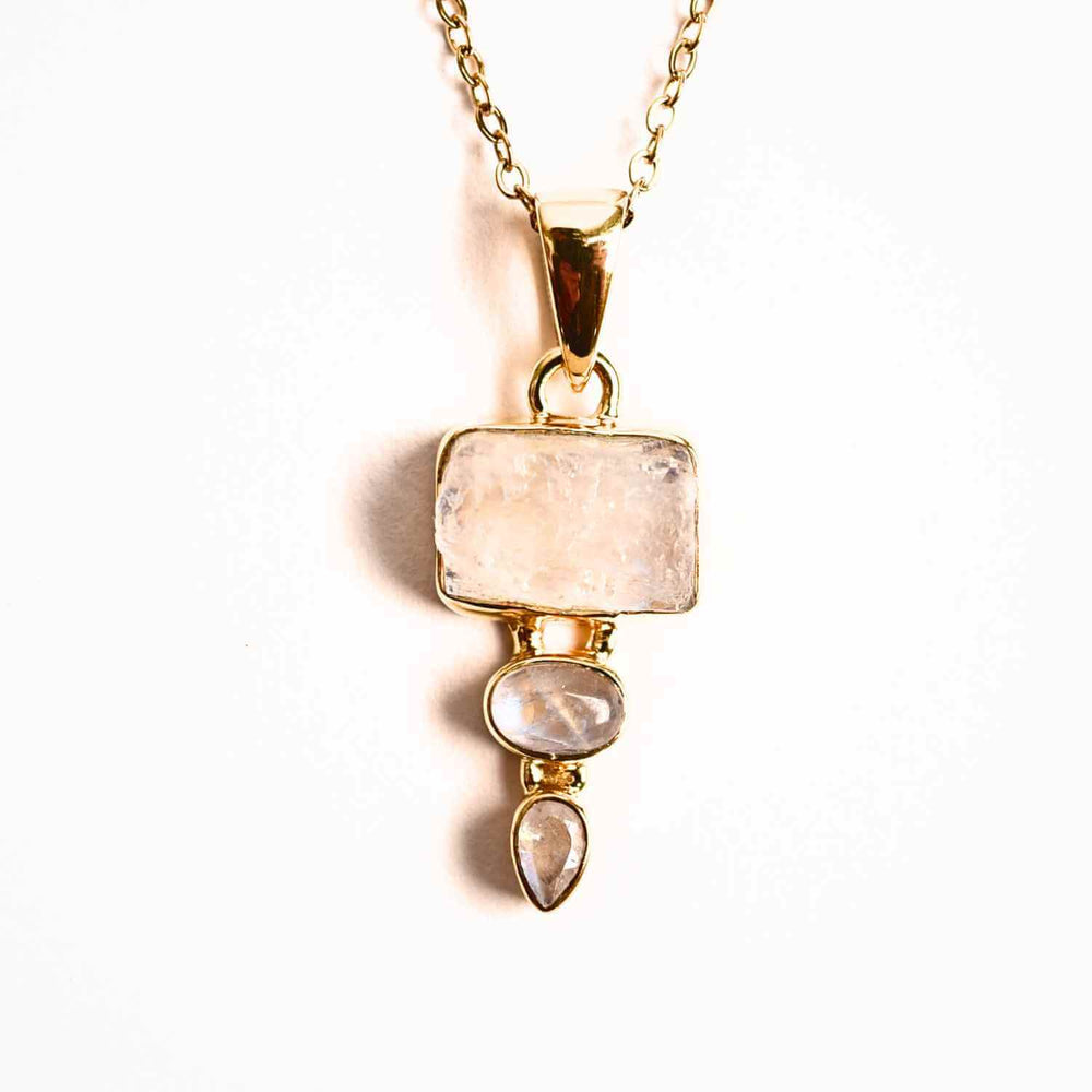 Intuitie si Echilibru Emotional – Colier inox si pandantiv argint 925 placat cu aur de18k si Triplu Piatra Lunii