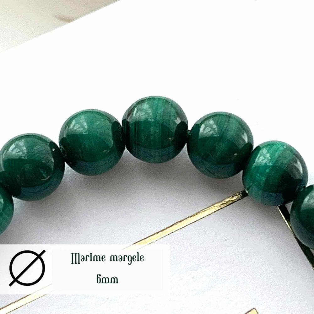 - Calitate Autentica: Bratara noastra din malachit verde este confectionata din malachit autentic de 6 mm, fara coloranti artificiali. Provenind din India, acest material de inalta calitate asigura durabilitatea si autenticitatea produsului, facandu-l o alegere premium pentru cei interesati de cristaloterapie; ATENTIE: Datorita unicitatii pietrelor de malachit exista posbilitatea ca structura de nuante sa fie diferita fata de poze.