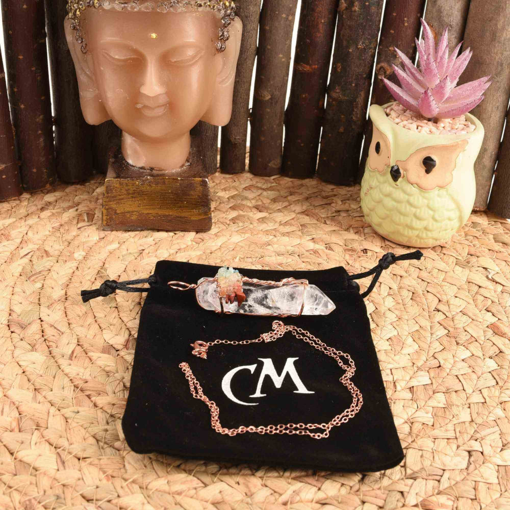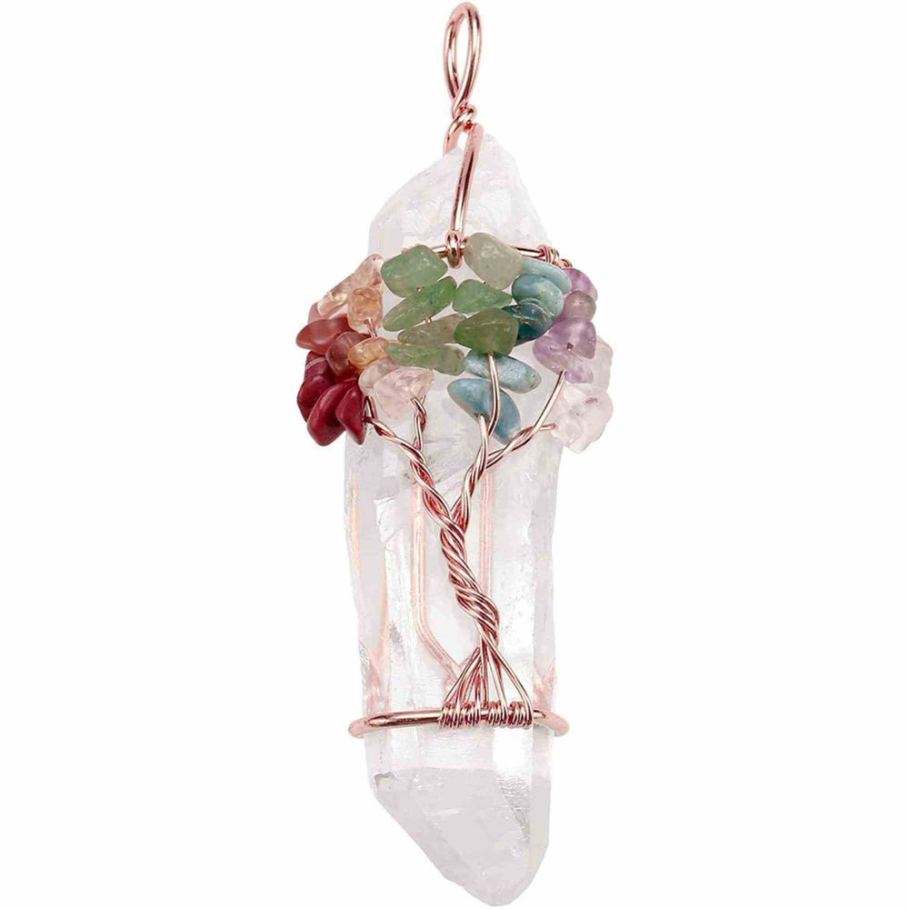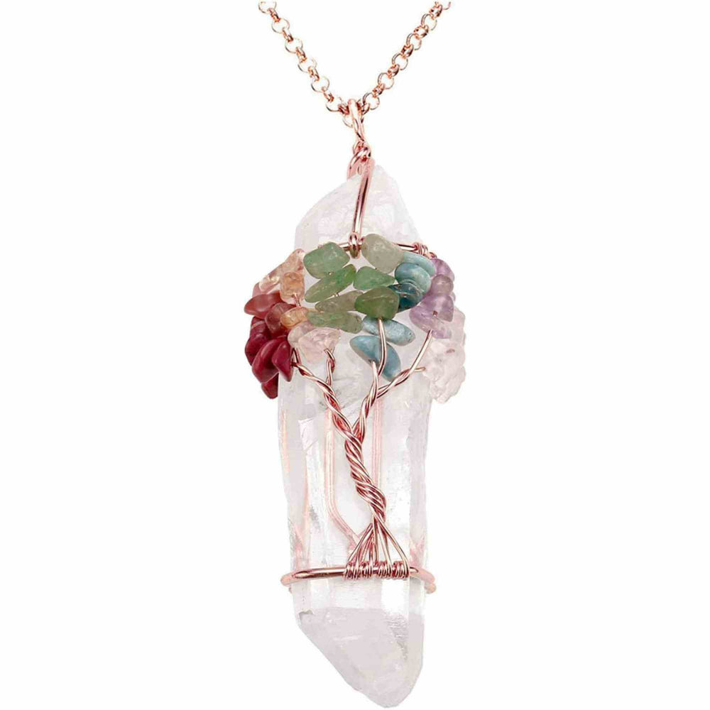 - Colierul 7 chakra este realizat manual cu pandantiv din Cristal de Stanca, infasurat intr-o sarma de cupru cu pietre semipretioase prabusite, sub forma unui copac al vietii;