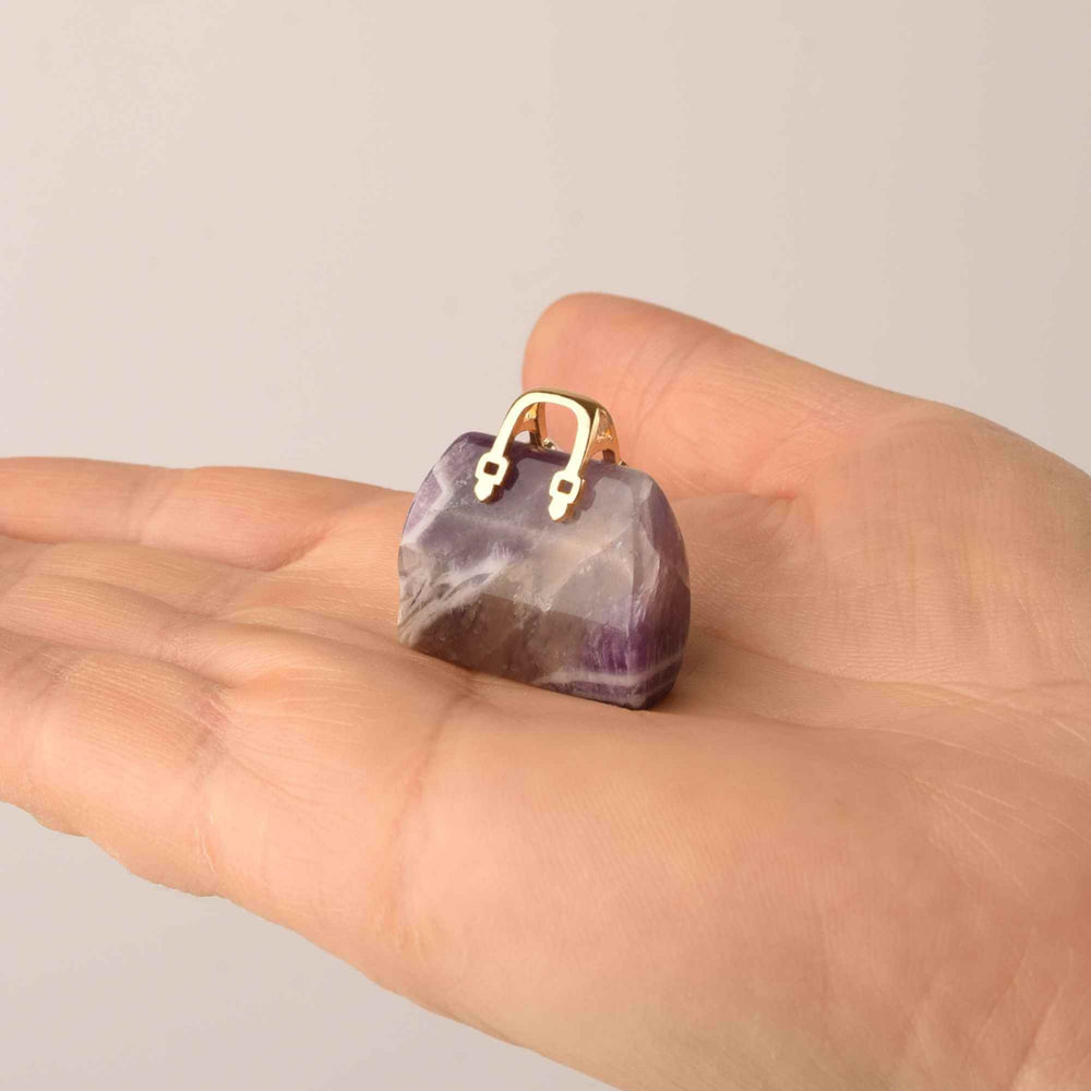 Pandantive 2.5 cm din piatra naturala Ametist, in forma de geanta - Accesorii din piatra pentru realizarea de bijuterii, cercei, colier