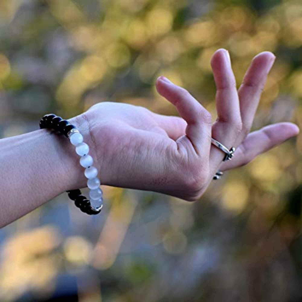 - Bratara de Dragoste din Obsidian si Selenit: Acest minunat accesoriu este realizat din cristale naturale de obsidian negru si selenit, doua pietre semipretioase renumite pentru proprietatile lor energetice si vindecatoare. Bratara reprezinta simbolul dragostei, datorita combinatiei puternice a acestor doua cristale;