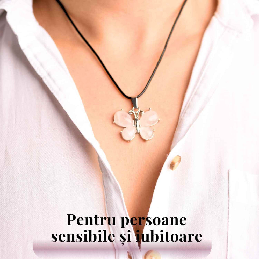 Colierul cu pandantiv fluture și pietre naturale aduce transformare, protecție și energie pozitivă în viața purtătorului. Alegerea pietrei este esențială: Ametistul susține claritatea mentală și protecția spirituală; Ochiul de Tigru aduce curaj și protecție împotriva energiilor negative; Cuartul Roz promovează dragostea și echilibrul emoțional. Acest colier este ideal pentru zodiile Pești, Leu, Balanță și Taur, în funcție de piatra aleasă.