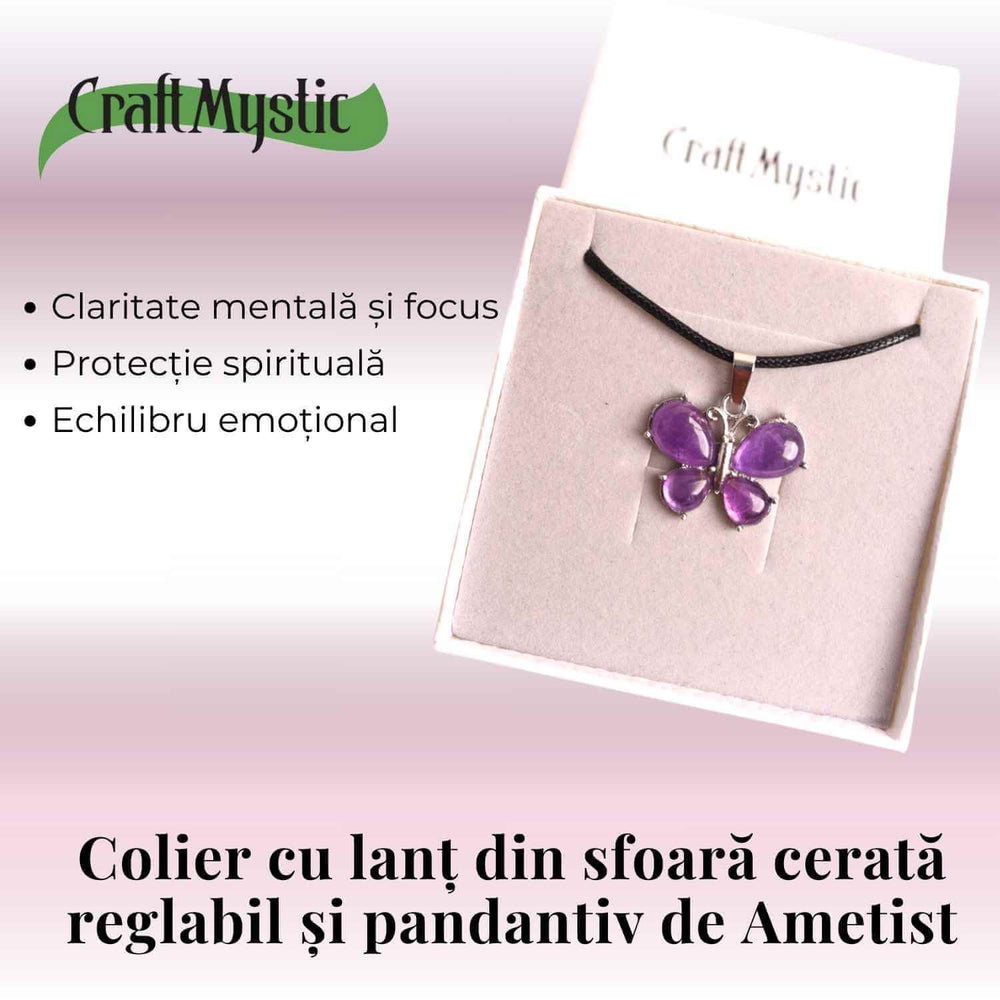Colier ajustabil fluture cu ametist – Protecție și Eleganță