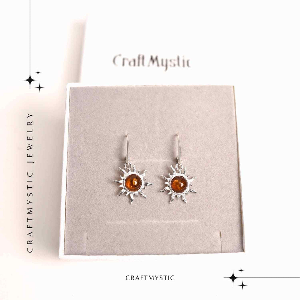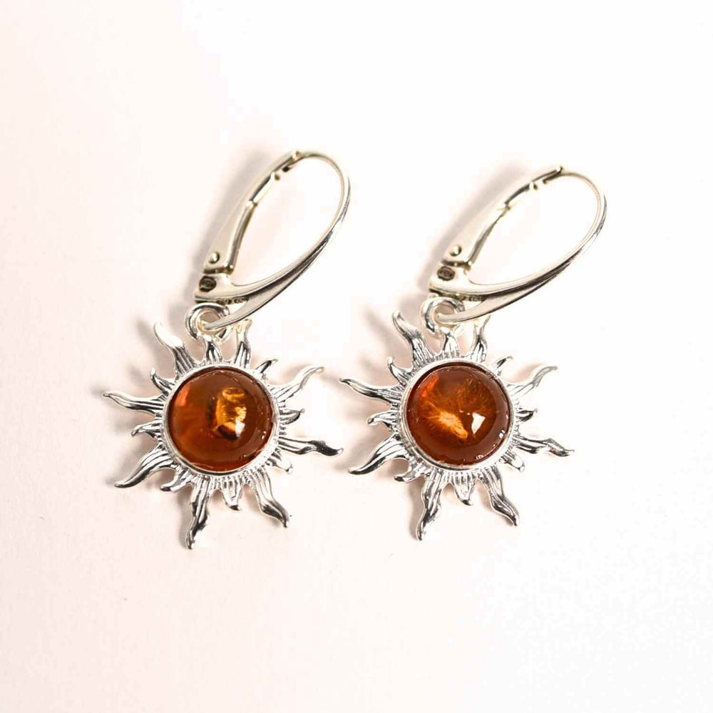 Cercei Argint 925 cu Chihlimbar Forma de Soare - Stralucire si Vitalitate