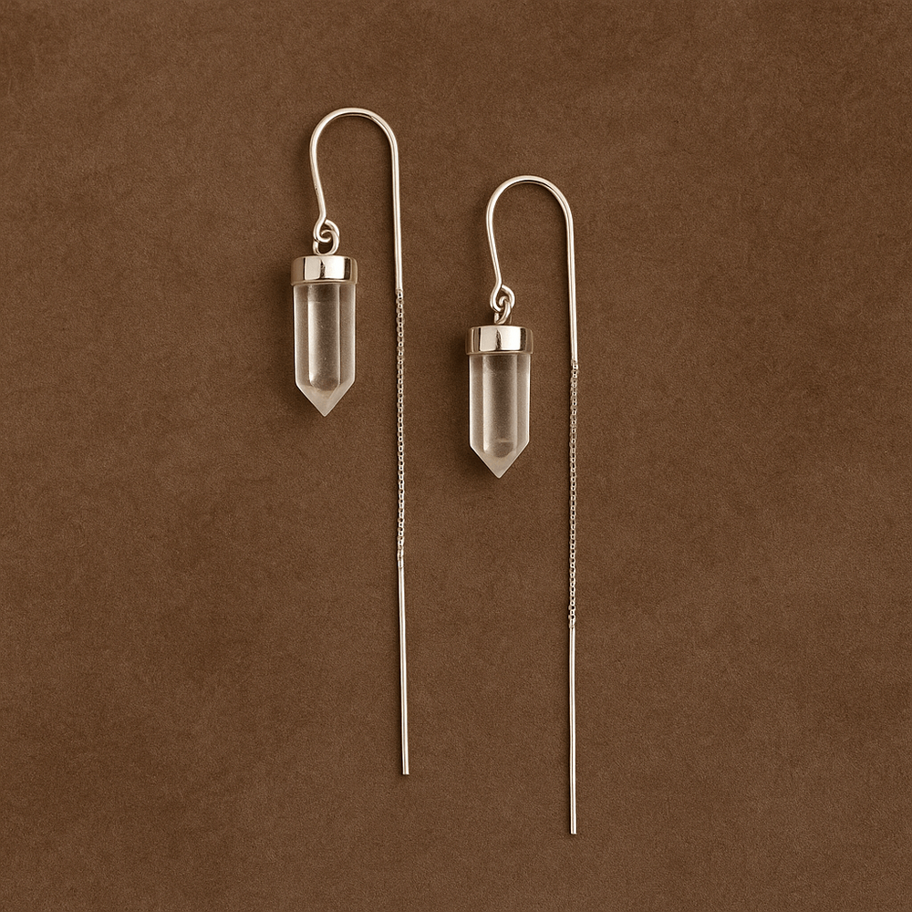 Claritate mentala si purificare – Cercei lungi din argint 925 cu Cuart de Stanca natural