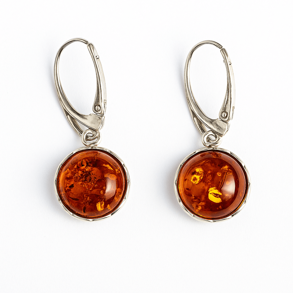 Piatra caldurii si linistii – Cercei simpli cu chihlimbar si montura argint 925