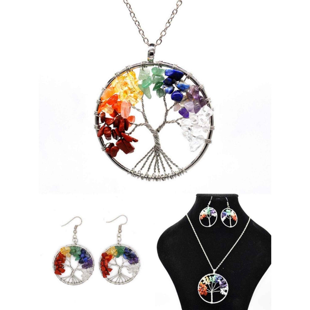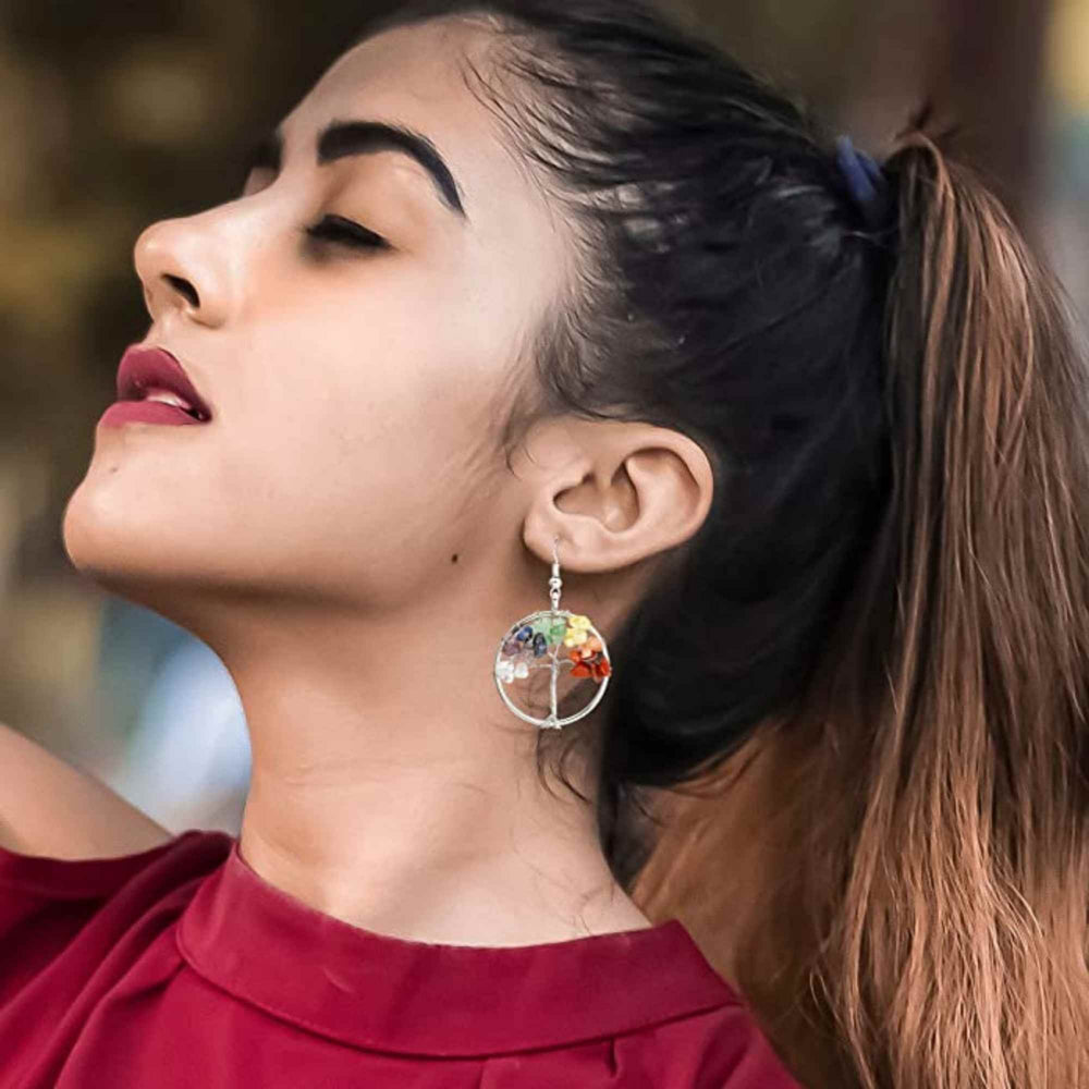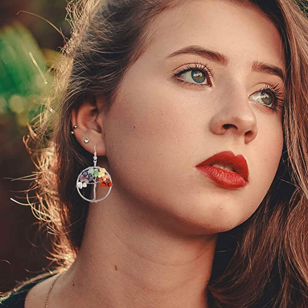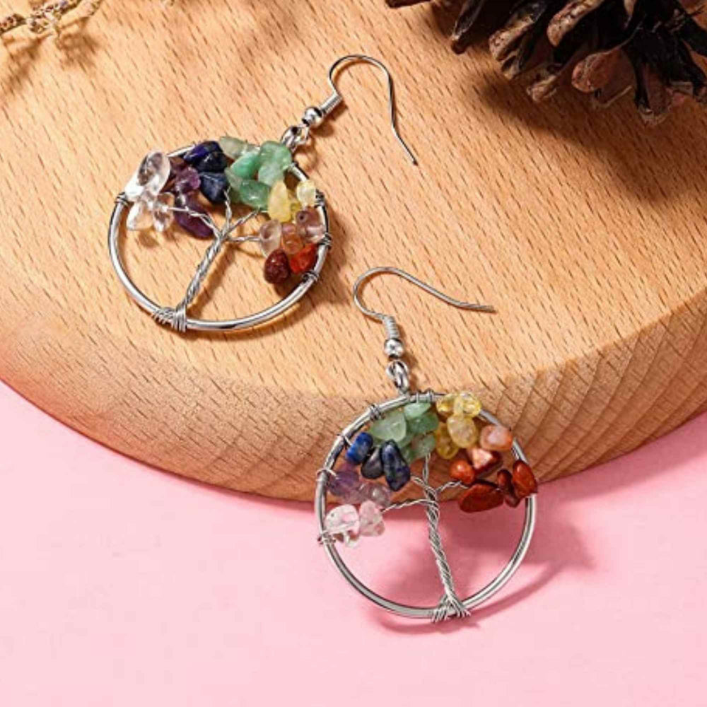 Cercei arborele vietii - Realizati manual cu pietre semipretioase si cristale vindecatoare a celor 7 chakre