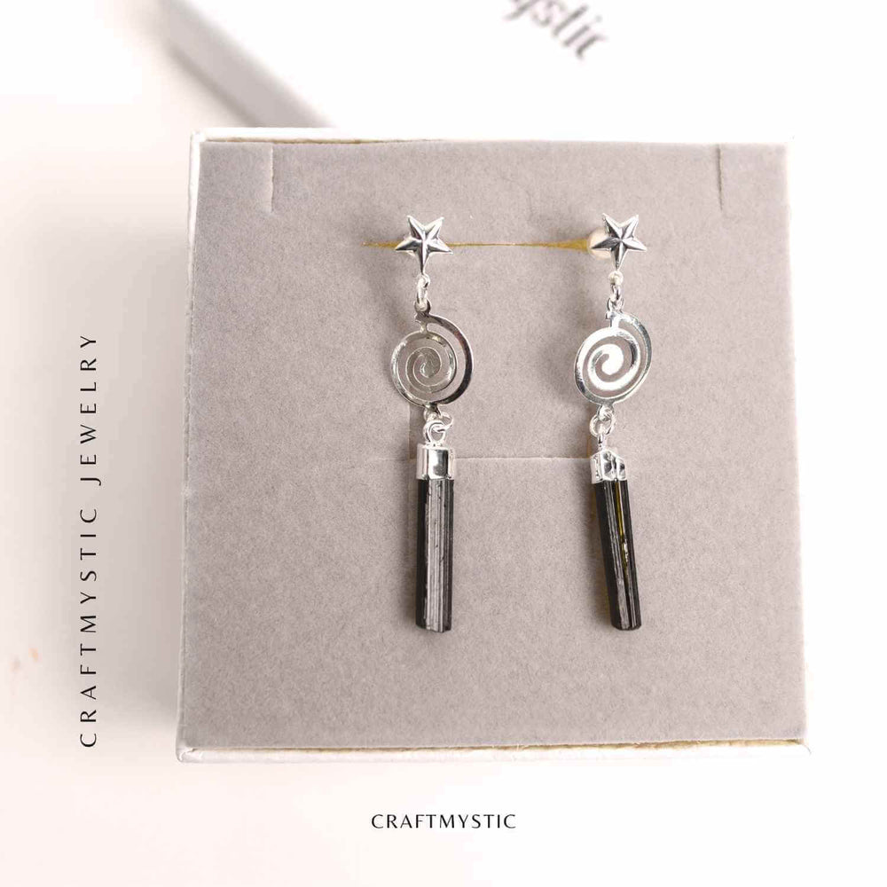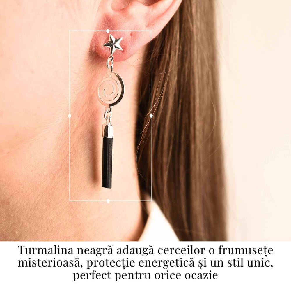 Cercei Argintii cu Turmalina, Cheia Sol si Stea, Protectie si Eleganta Unica