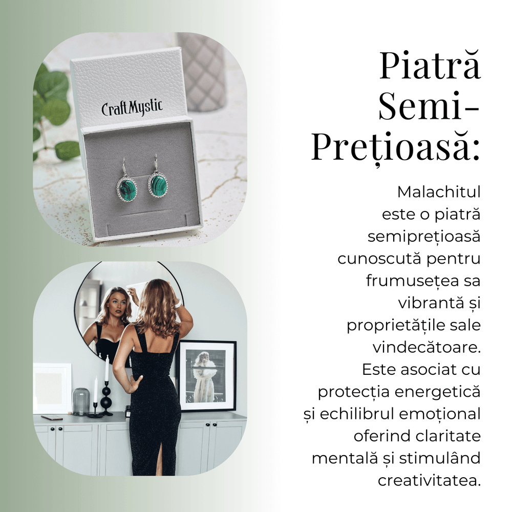 - Eleganță și Stil: Acești cercei argintii cu malachit natural adaugă un accent de rafinament oricărei ținute.
