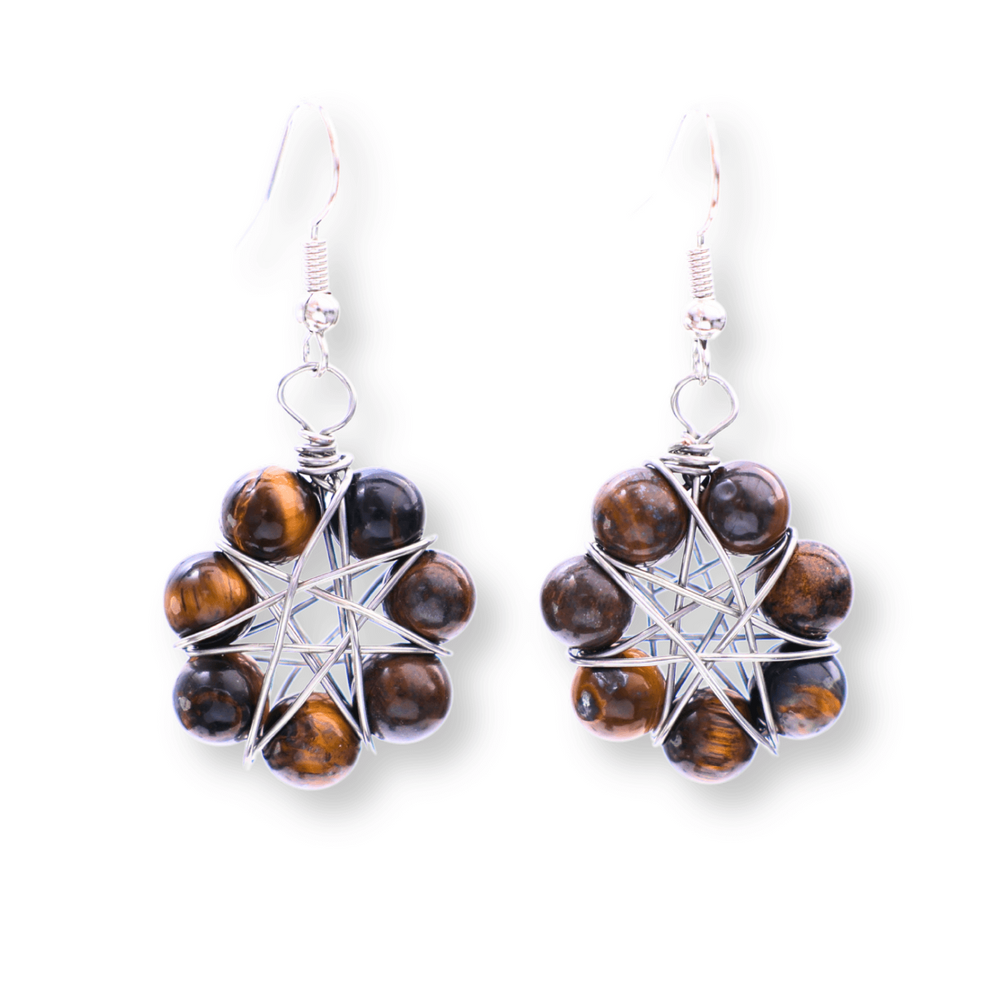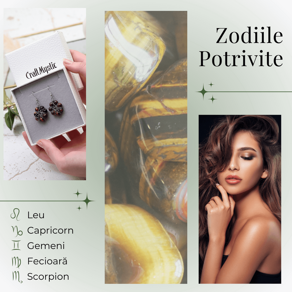 Acesti cercei delicat lucrati in forma de floare, cu insertii de Ochi de Tigru, combina eleganta designului floral cu puterea si energia cristalului Ochi de Tigru. Ideal pentru cei care cauta un echilibru intre frumusete estetica si beneficii spirituale.