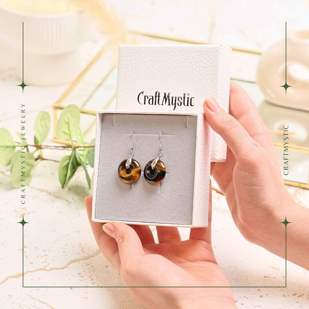 Acești cercei argintii cu piatră naturală Ochi de Tigru în formă Pi oferă un design sofisticat și beneficii energetice unice. Fiecare piatră de 20 mm aduce protecție și încredere purtătorului, transformând cerceii într-un accesoriu perfect pentru orice ocazie.