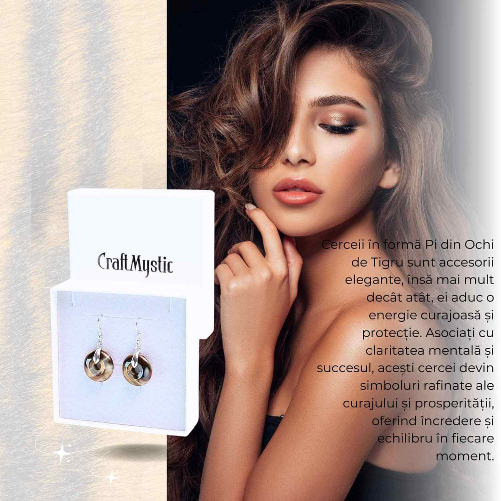 Cercei Argintii Ochi de Tigru Forma Pi - Protectie si Incredere