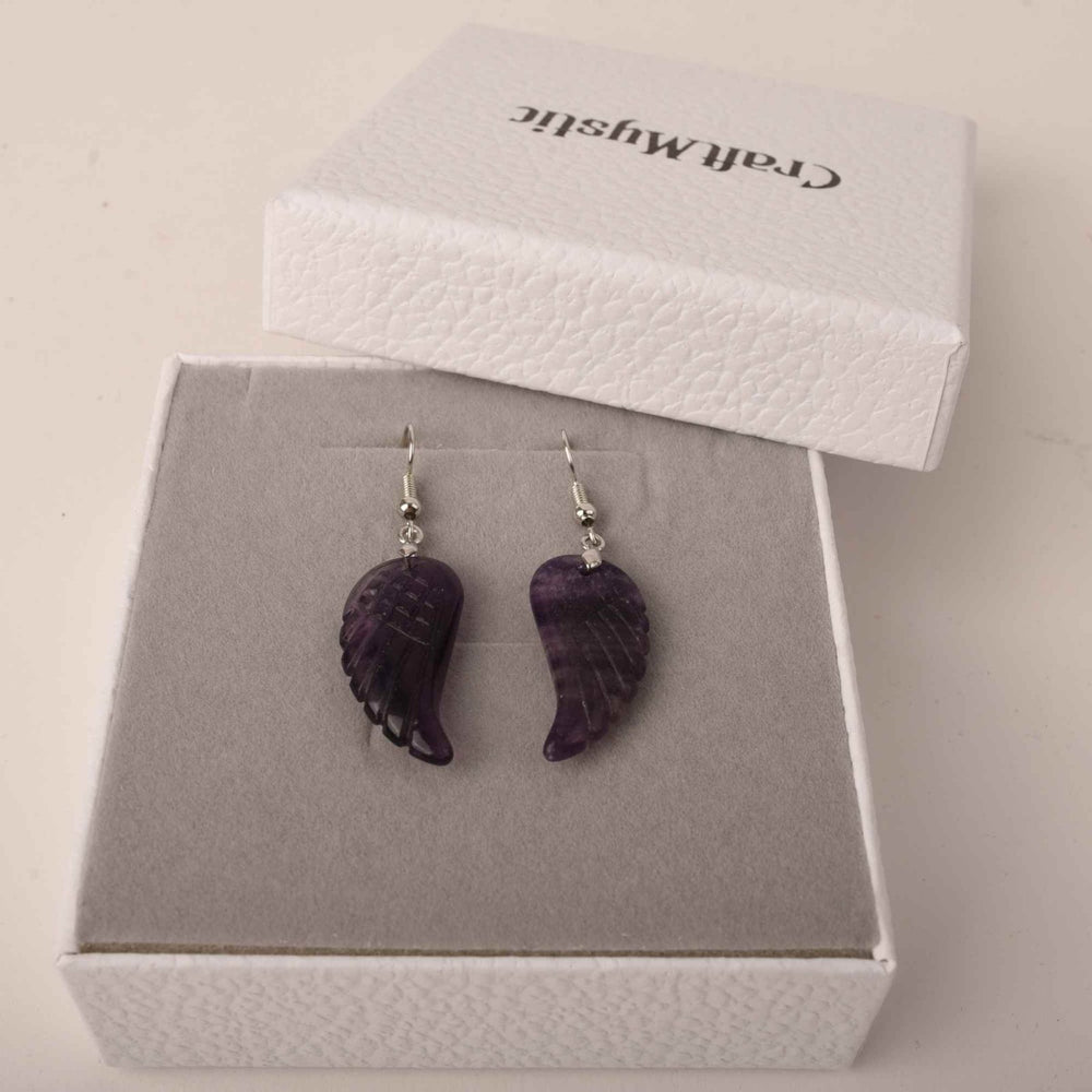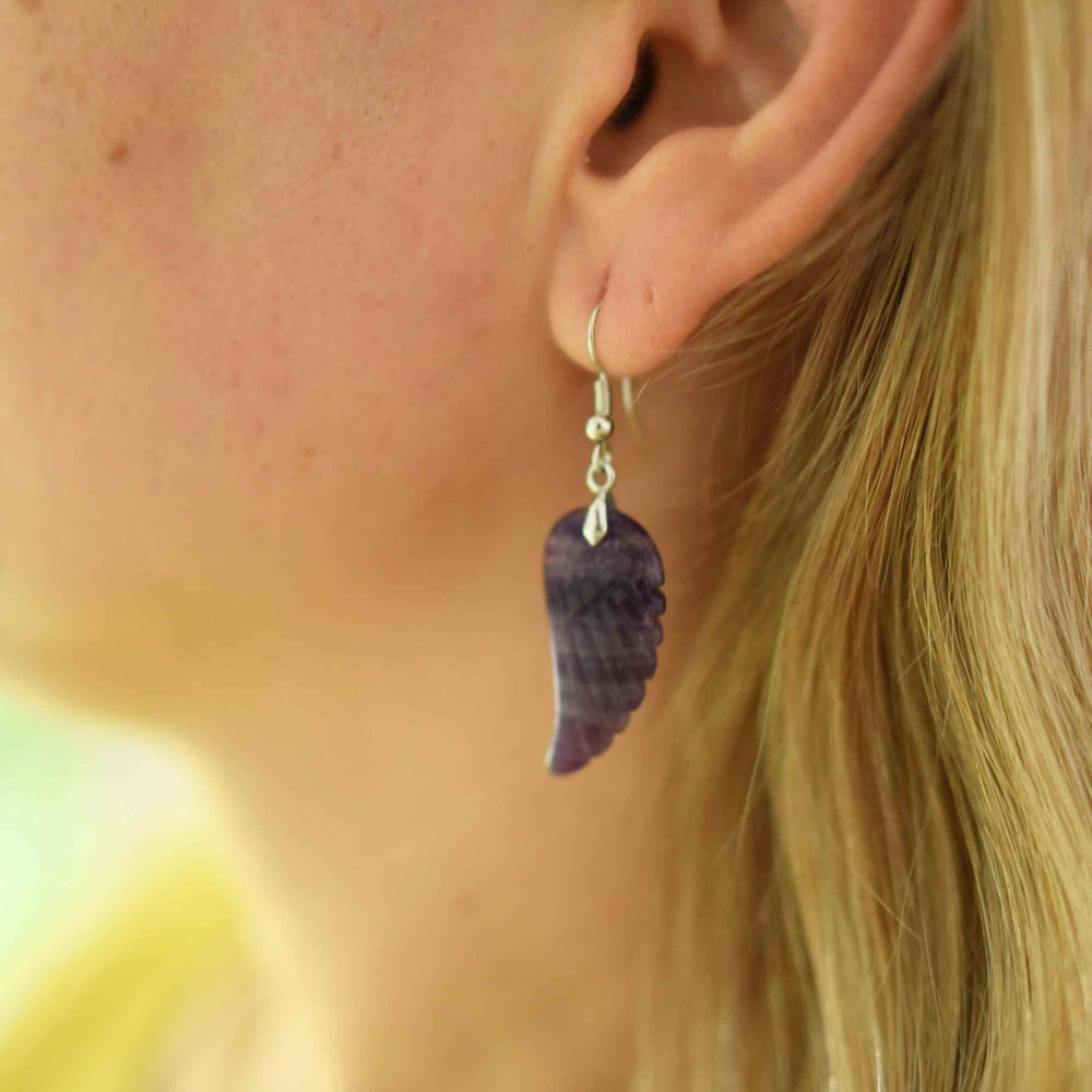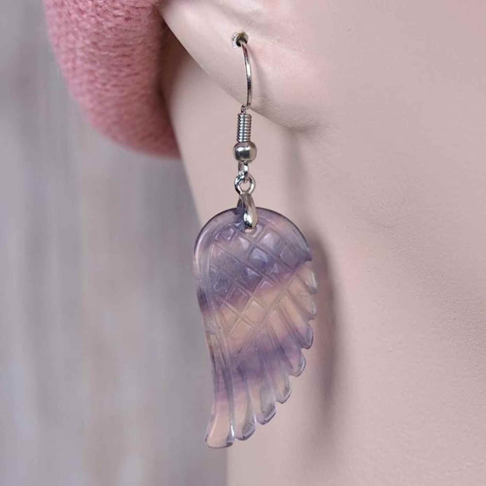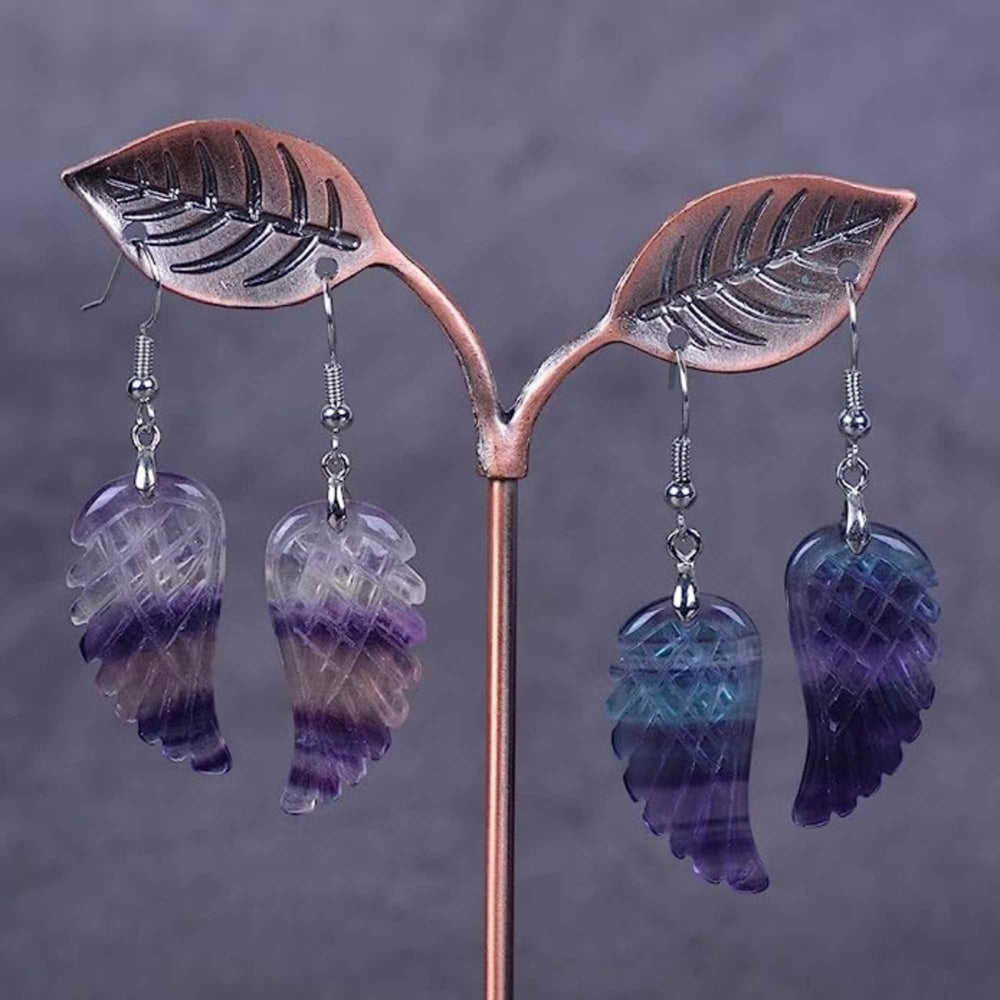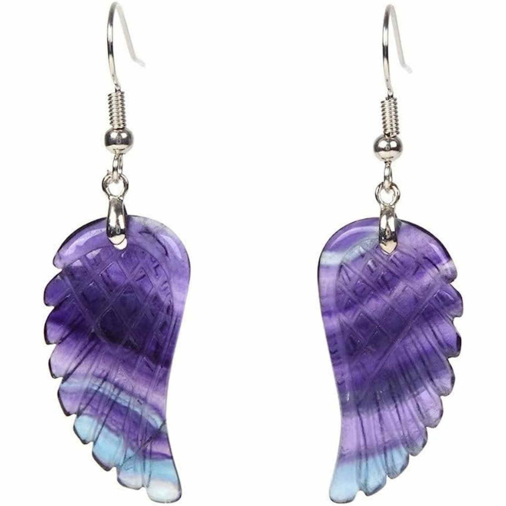 Cercei aripi de inger din piatra semipretioasa Fluorit 3 cm