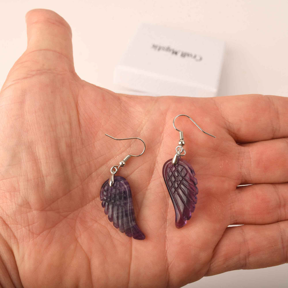 - Dimensiuni si greutate: Fiecare cercei cu aripi de inger din Fluorit are dimensiunile de aproximativ 30x15mm, cu o grosime de 5mm. Lungimea totala a cerceilor este de aproximativ 52-55mm. Acesti cercei sunt usori si placuti de purtat;