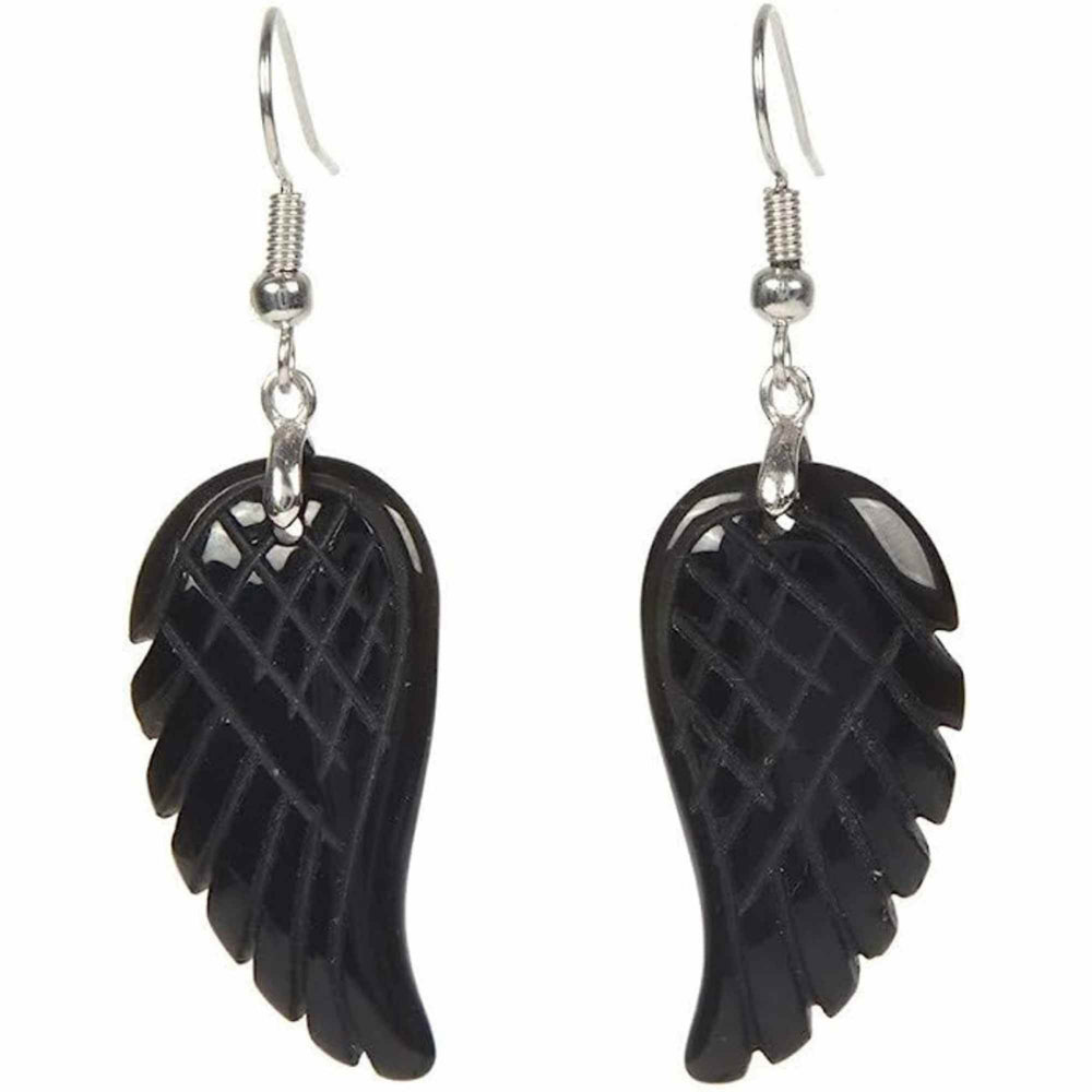 Cercei aripi de inger din piatra semipretioasa Obsidian 3 cm