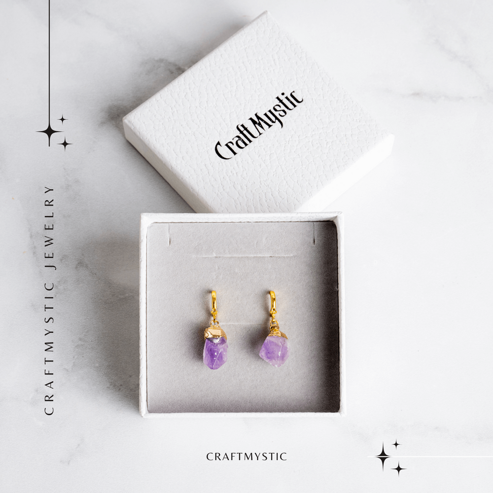 Descoperă energia liniștitoare a Ametistului Brut Natural cu acești cercei aurii – perfecti pentru un stil unic și beneficii spirituale.