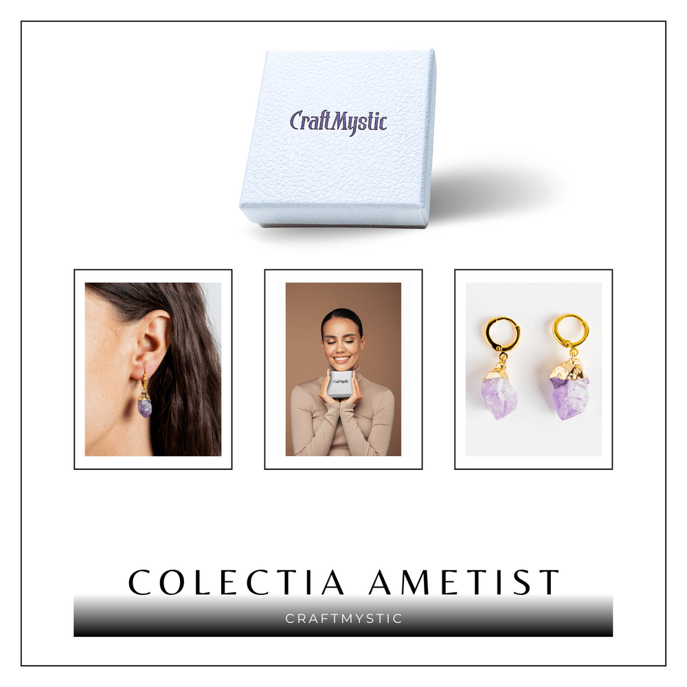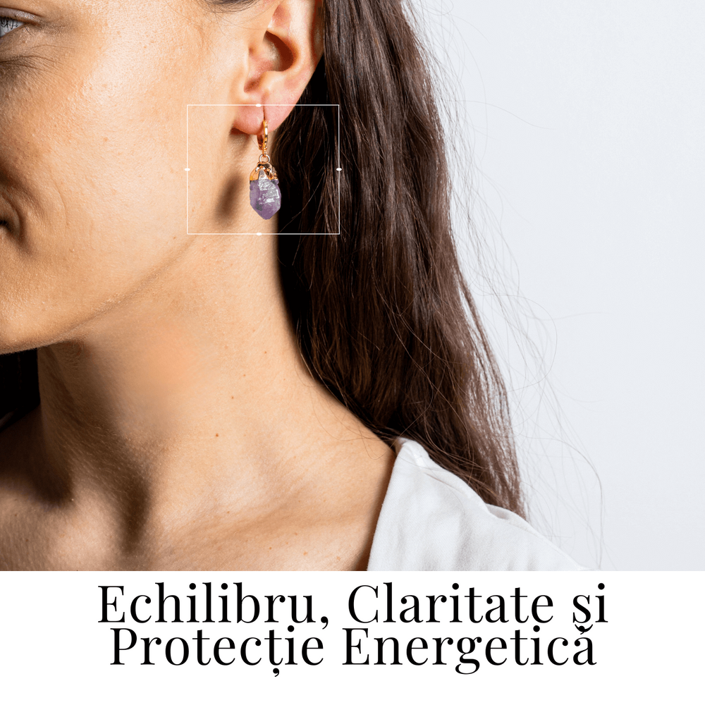 Poartă cerceii zilnic pentru a experimenta liniștea și echilibrul pe care Ametistul îl aduce în viața ta.