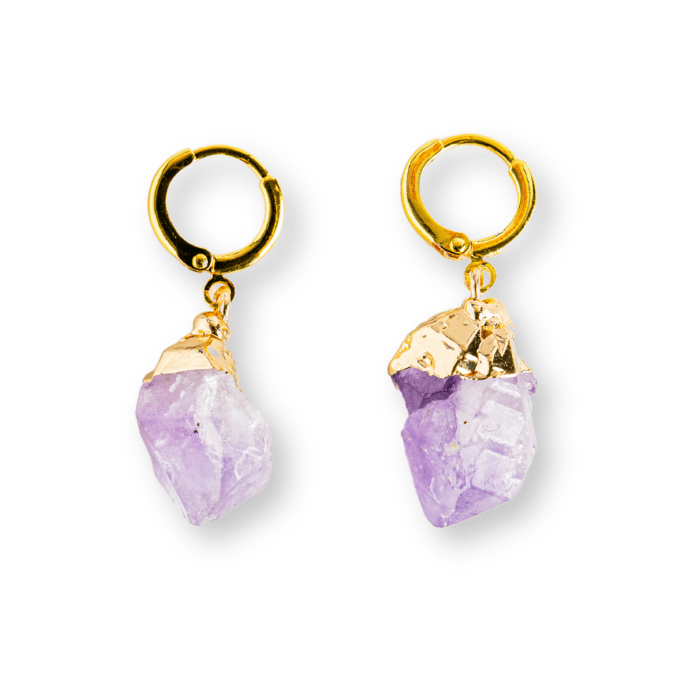 Cercei Aurii cu Ametist Brut Natural –Energie si Echilibru