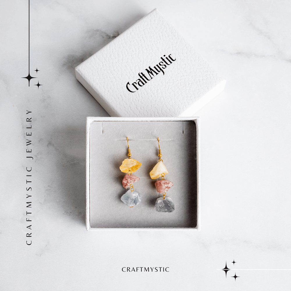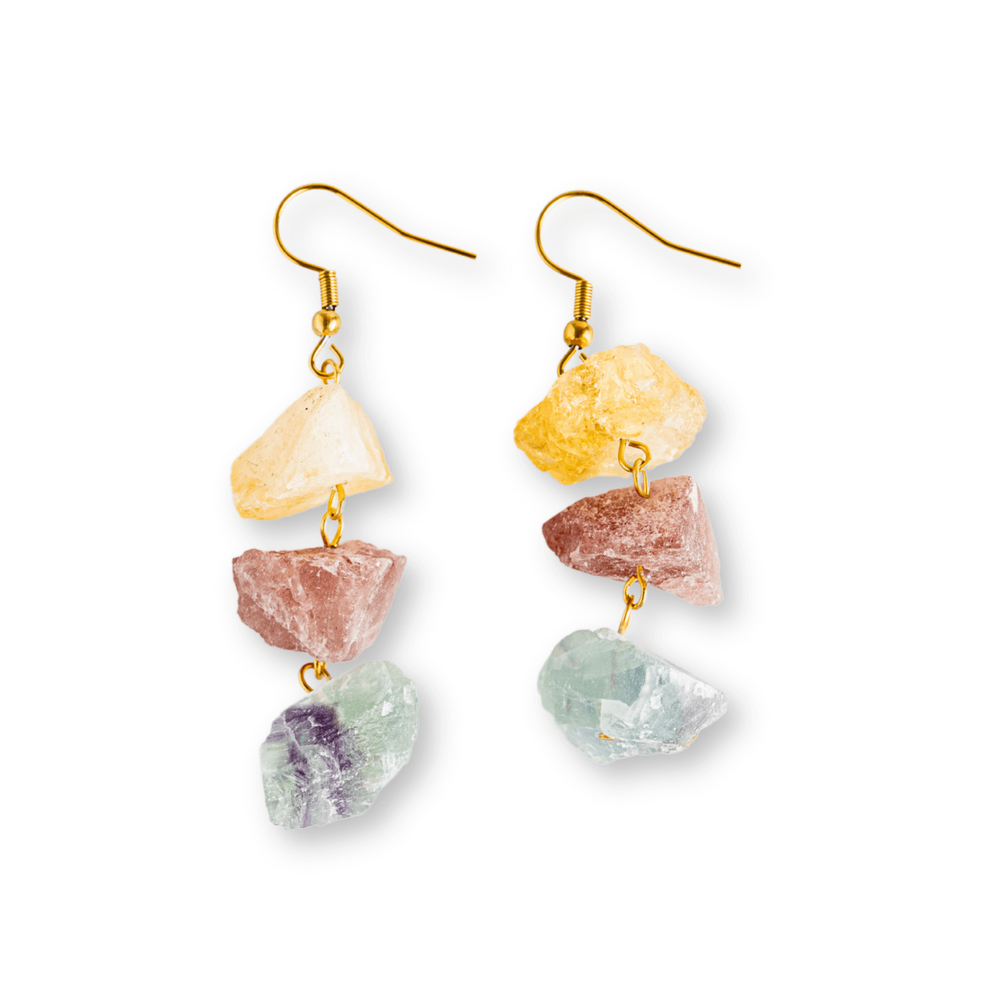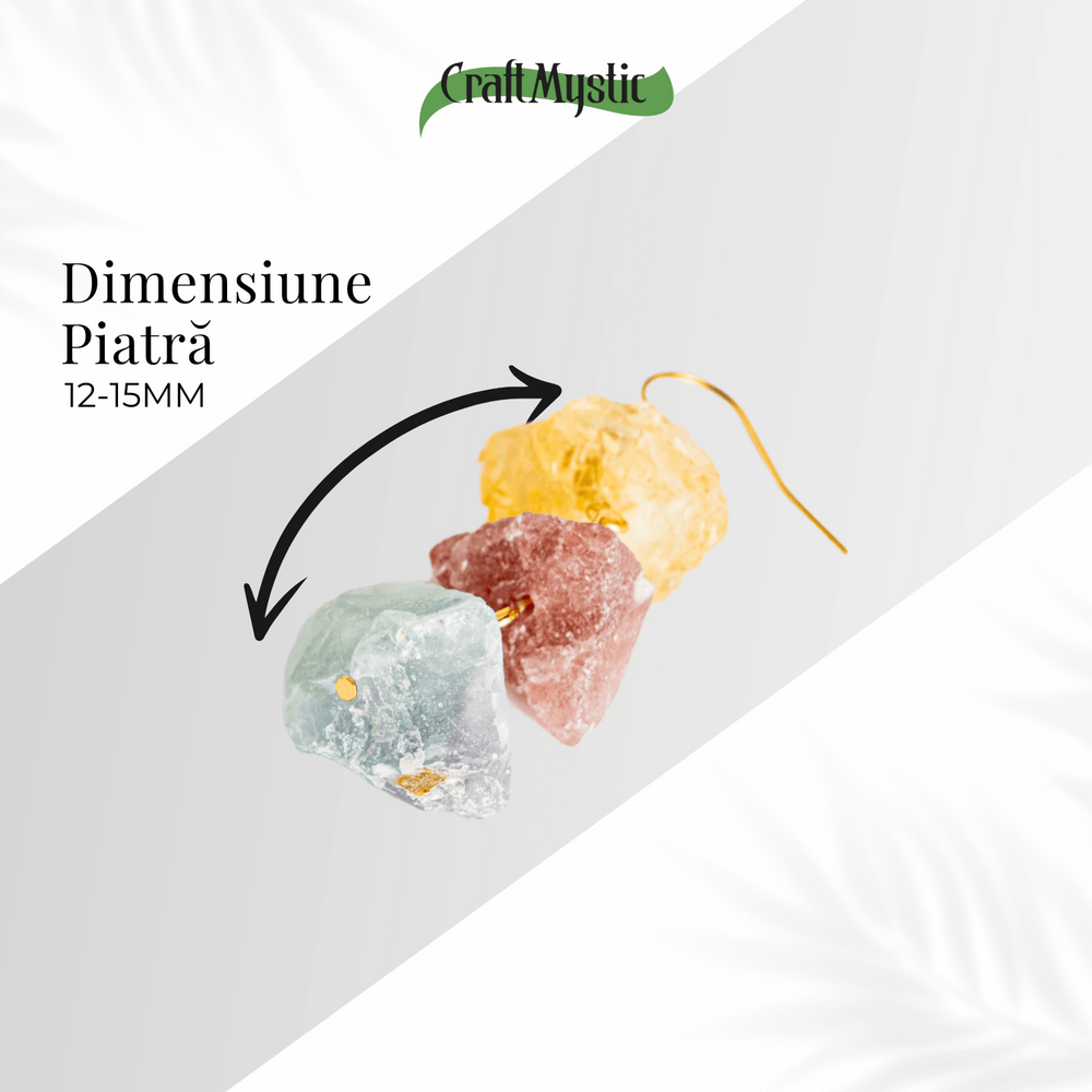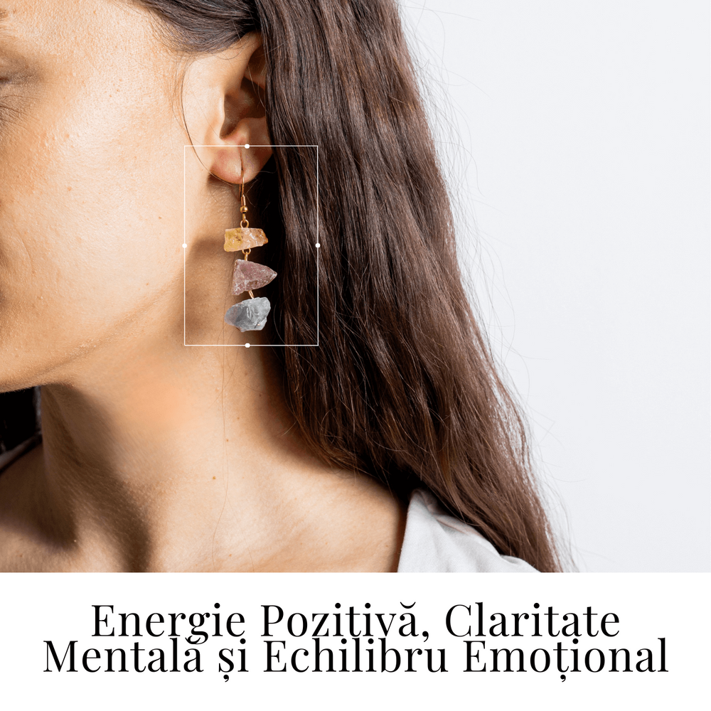 Descoperă magia pietrelor semiprețioase! Cercei aurii cu Citrin, Cuart Roz și Fluorit pentru un stil unic și echilibru interior.