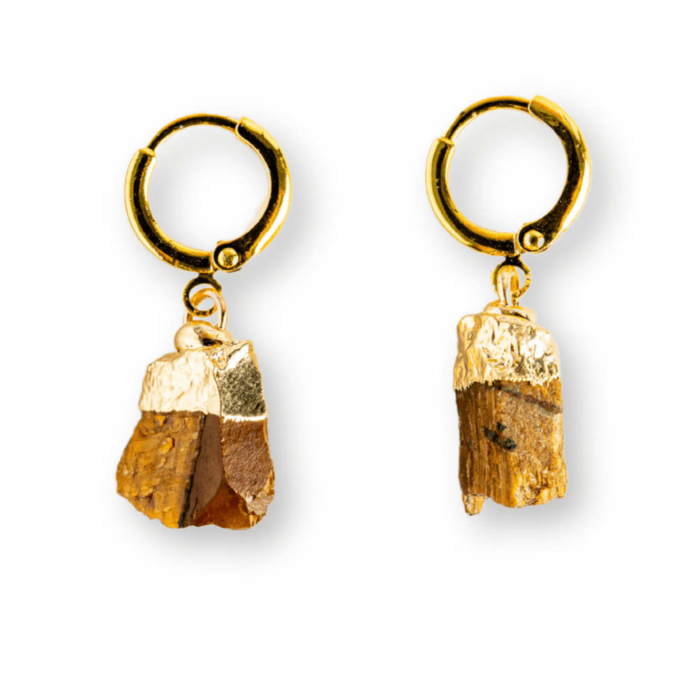 Cercei Aurii cu Ochi de Tigru Brut Natural – Putere si Protectie