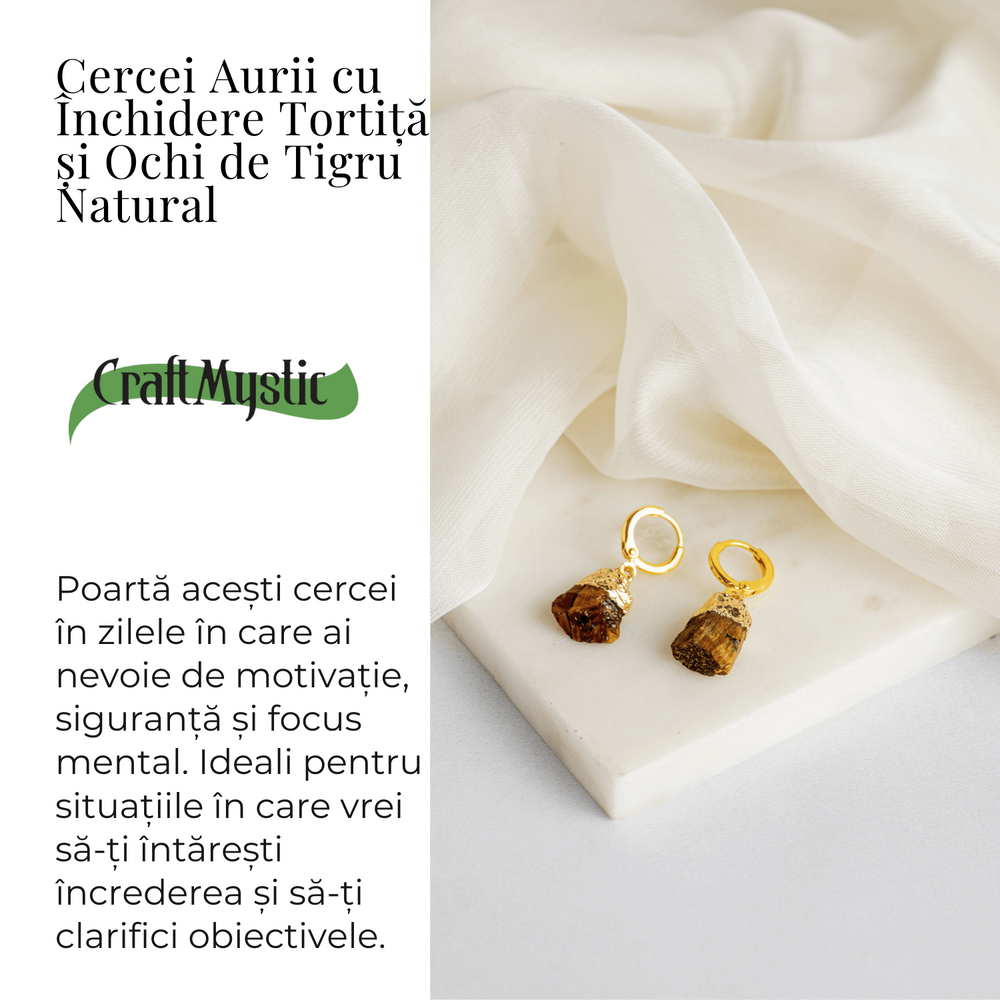 Adaugă acești cercei Aurii cu Ochi de Tigru Brut Natural în colecția ta și simte puterea protecției și încrederii. Cumpără-i acum și beneficiază de energia pozitivă a acestei pietre extraordinare!