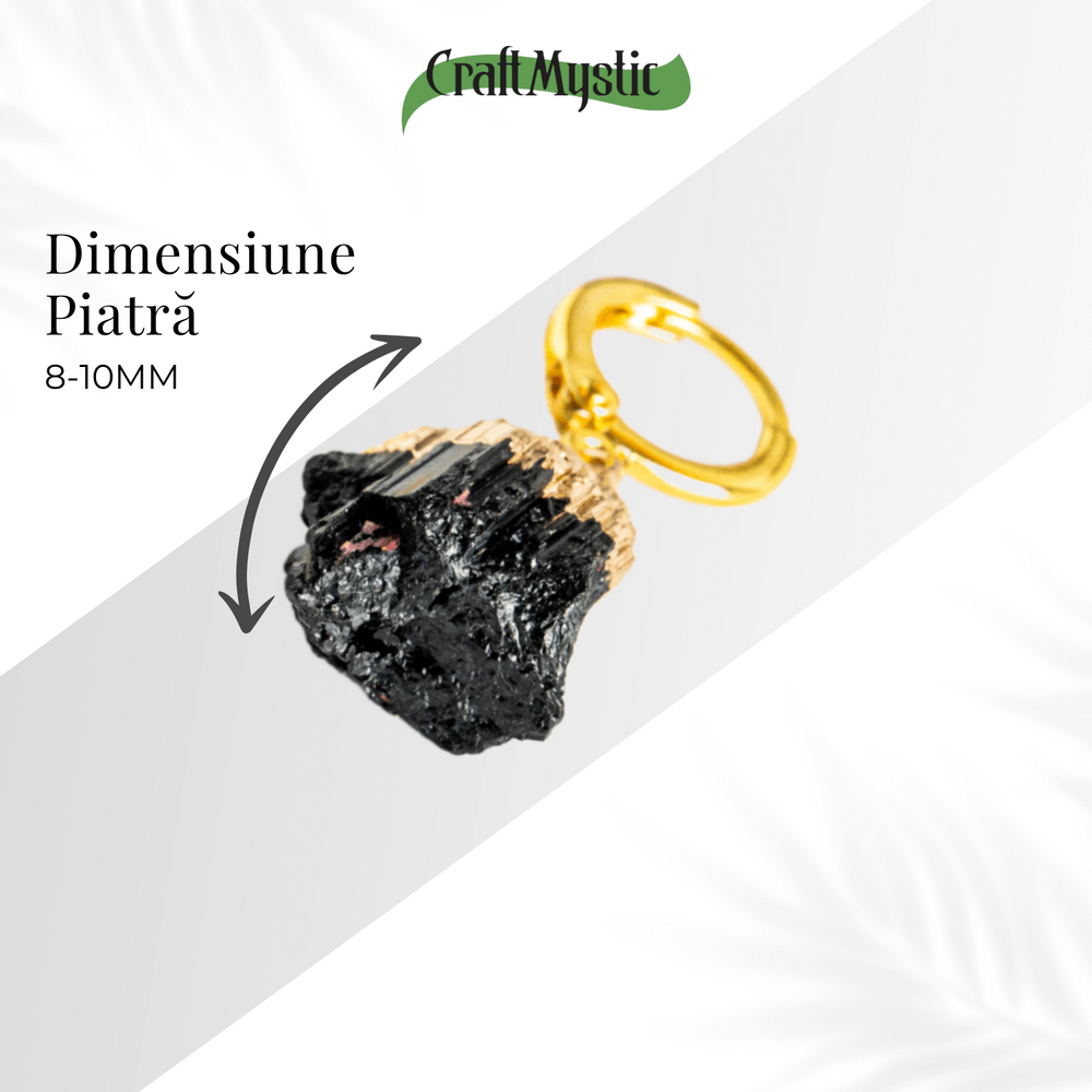 Cercei Aurii cu Turmalina Bruta Naturala – Protectie Energetica