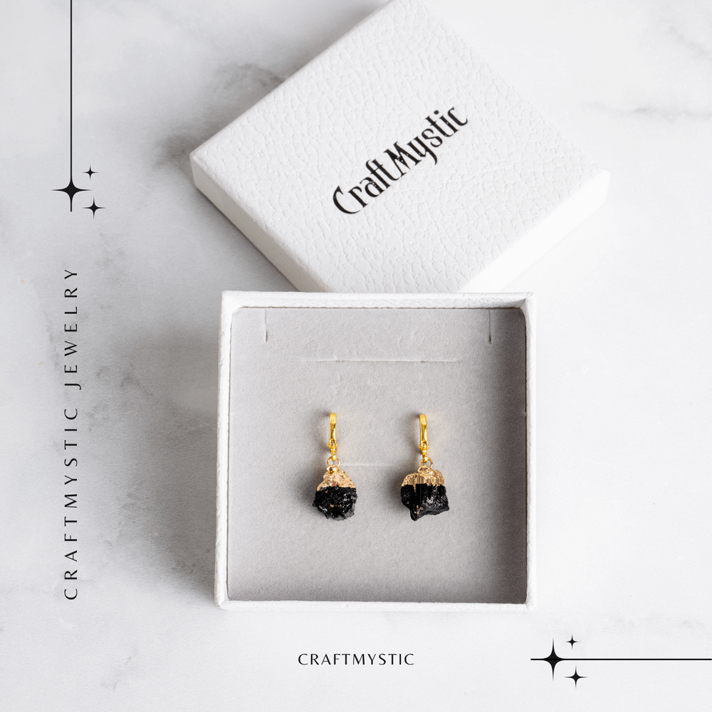 Energie pozitivă și protecție spirituală în stil – Cercei cu Turmalina Brută Naturală, acum la îndemâna ta!