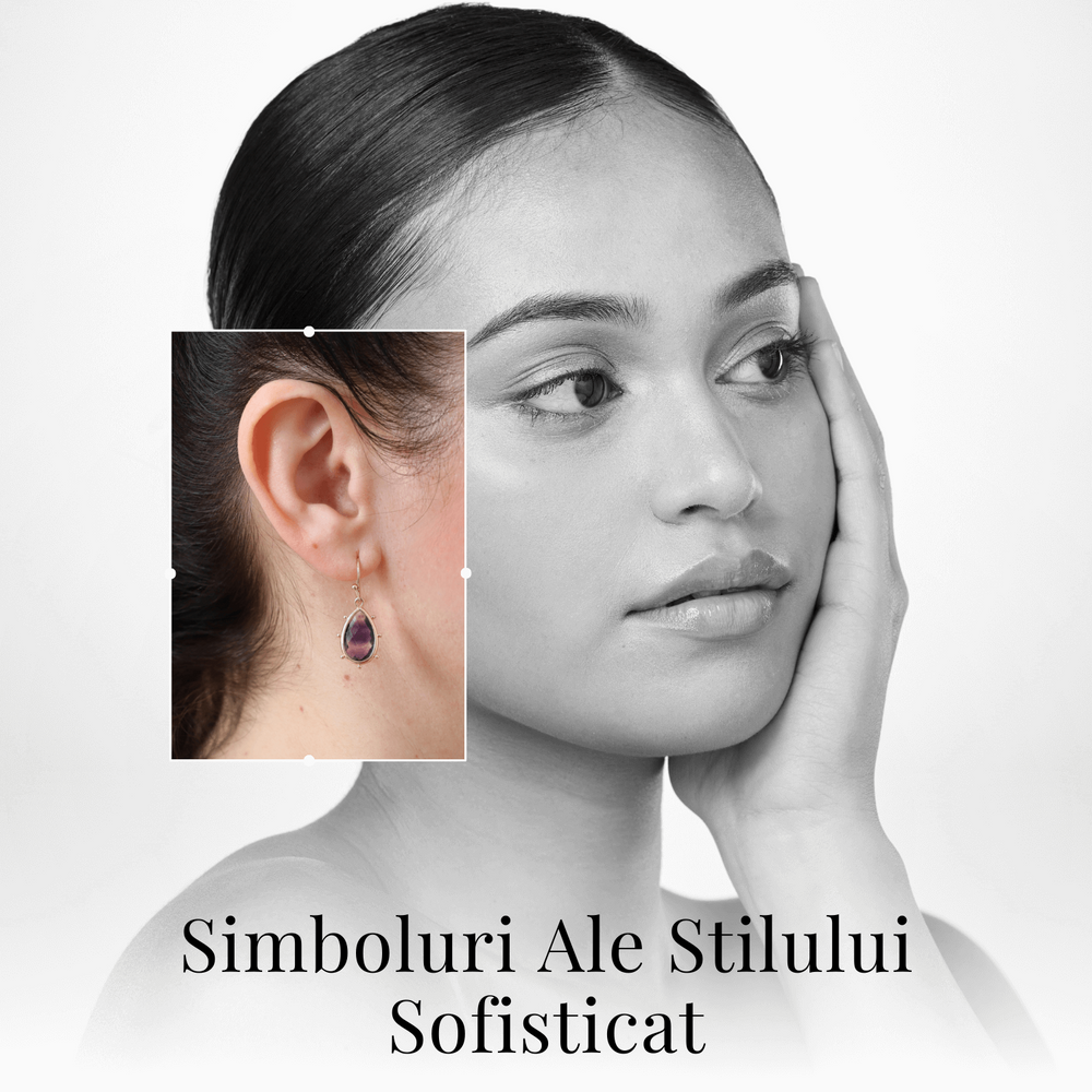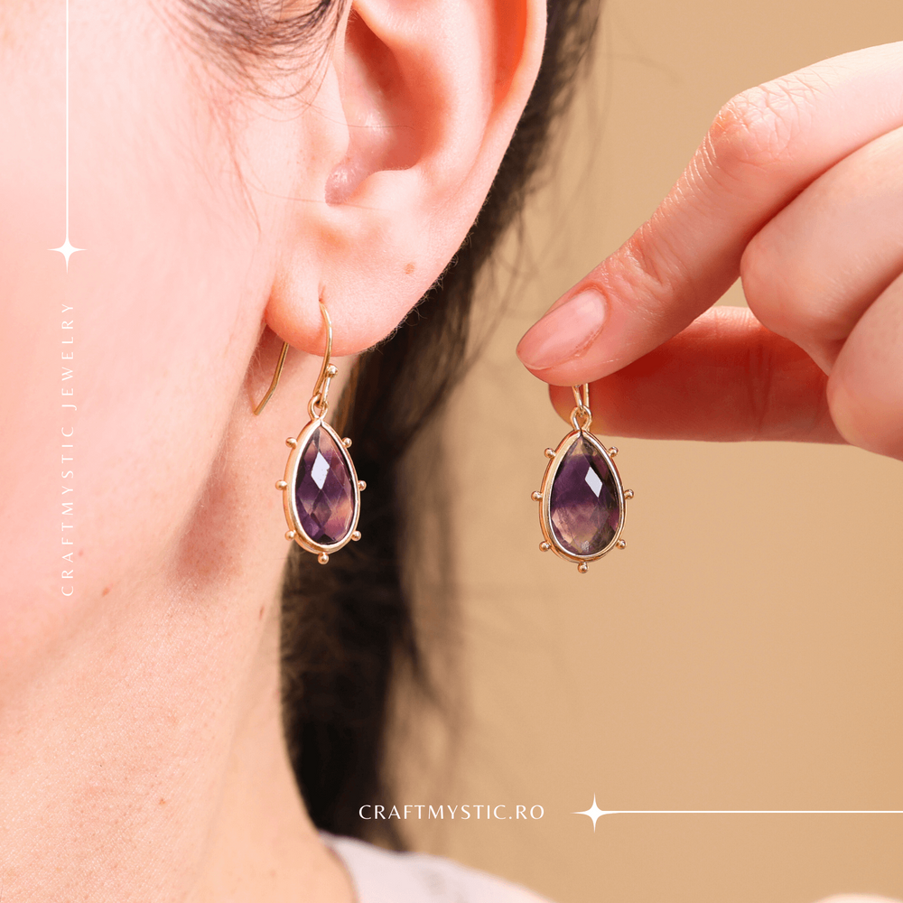 Cercei Aurii Eleganti cu Ametist Fatetat