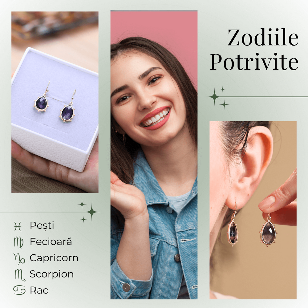 Compatibilitate Zodiacala: Ametistul este considerat a fi deosebit de benefic pentru zodiile Pesti, Varsator, Capricorn si Berbec, dar poate fi purtat cu placere de orice persoana, indiferent de zodie.