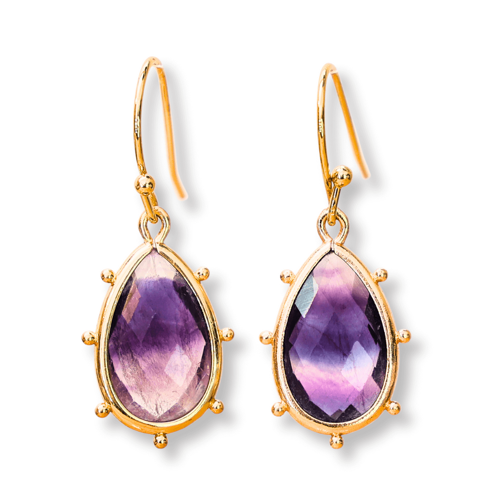 Design Rafinat: Cerceii prezinta ametist fatetat intr-o montura aurie, oferind un aspect clasic si totodata modern.
