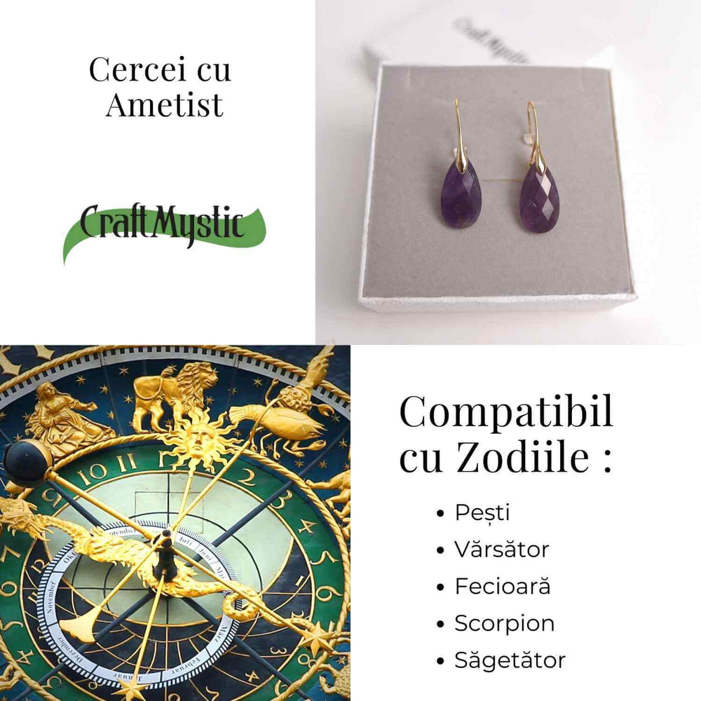 Alege acești cercei eleganți cu ametist fațetat sau oferă-i cadou pentru a aduce calm, claritate și un plus de rafinament în viața celor dragi!