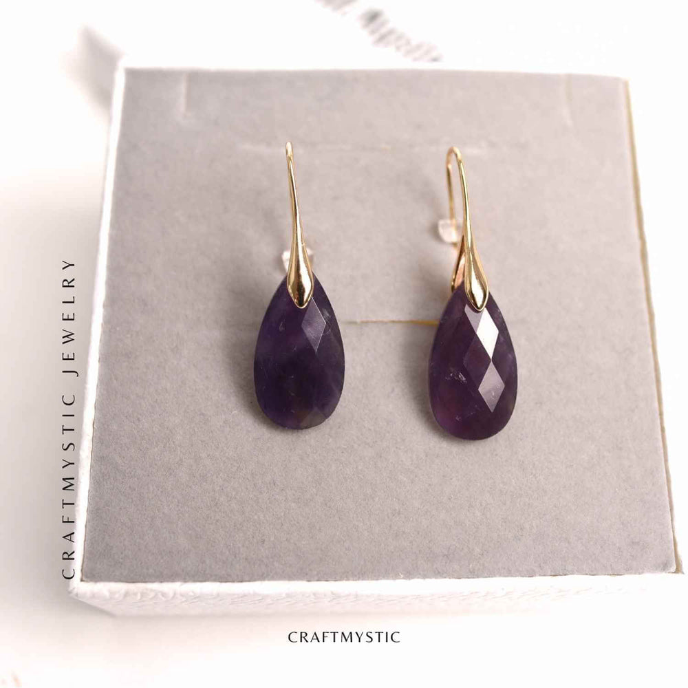 Cercei Aurii eleganti cu Ametist natural Fatetat – Eleganta si Calm Interioar
