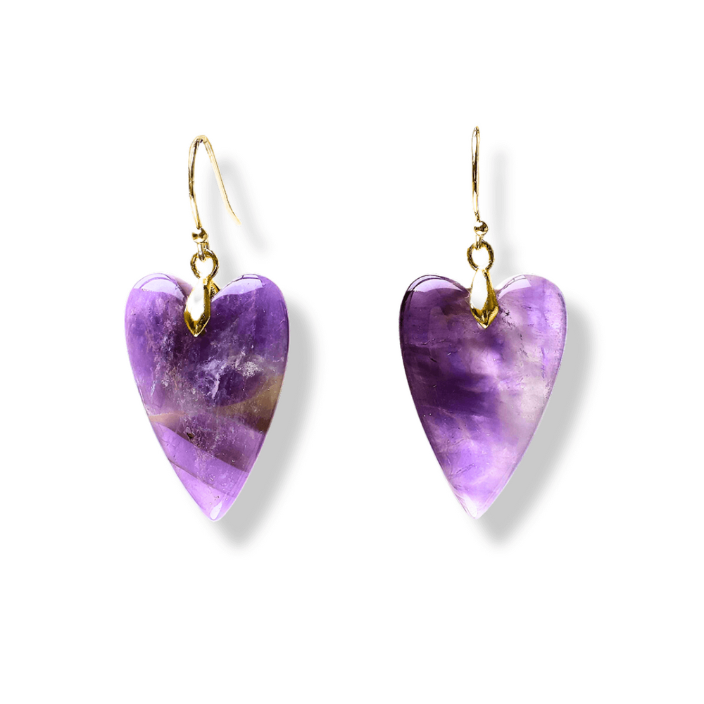 Cercei Aurii in Forma de Inima cu Cristal de Ametist