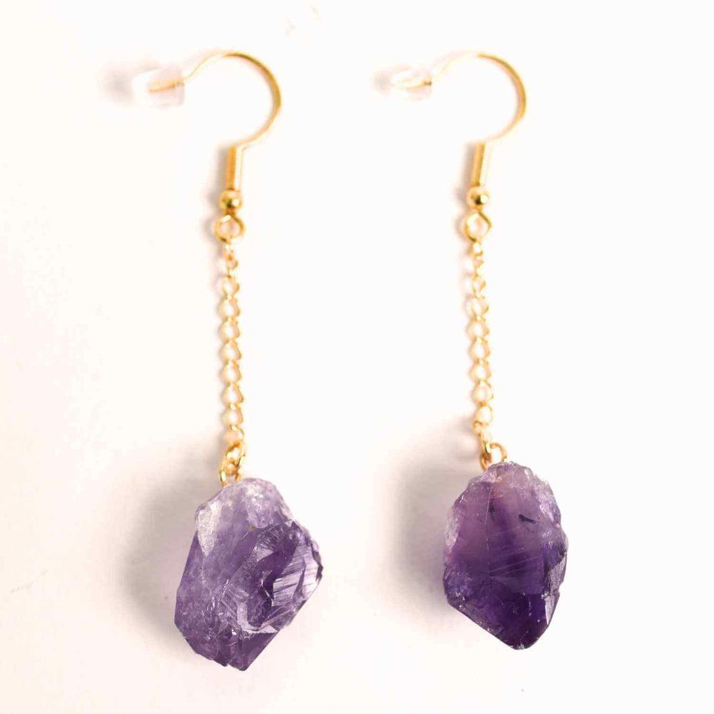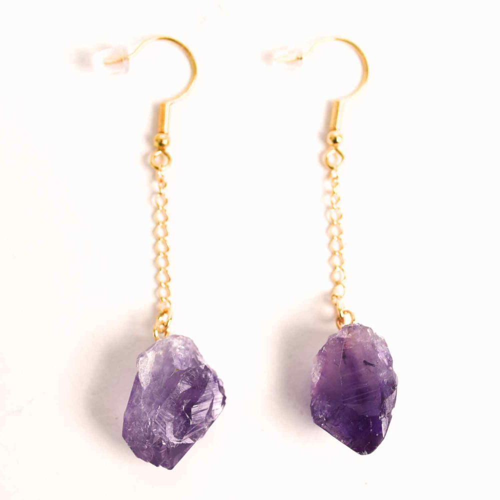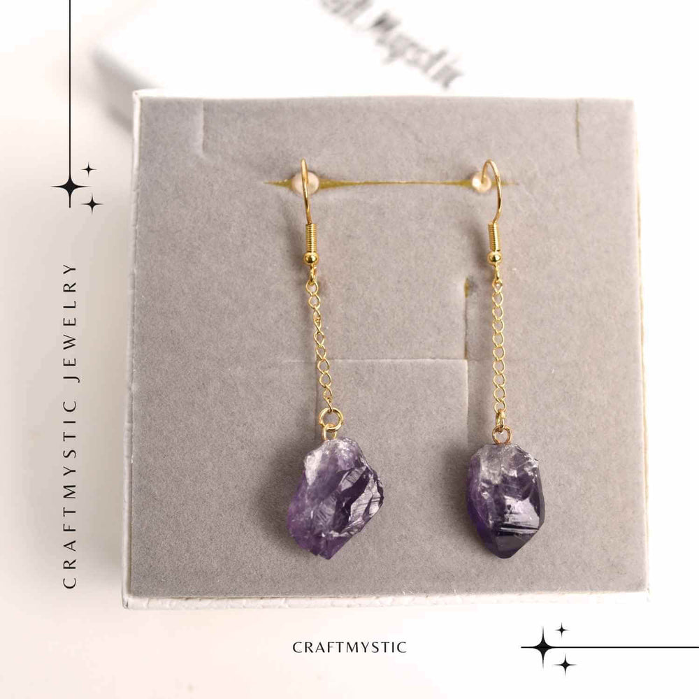 Cercei Aurii model cu Lant si Ametist Brut, Eleganta si Calm Interior