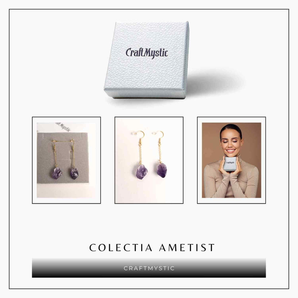Descoperă frumusețea unică a cerceilor din ametist brut, acum într-un design exclusiv.