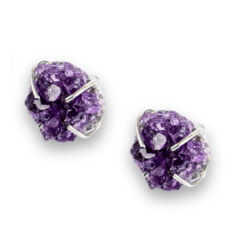 Cercei cu Cristal de Ametist Druzy – Inchidere pe Tija cu Opritor