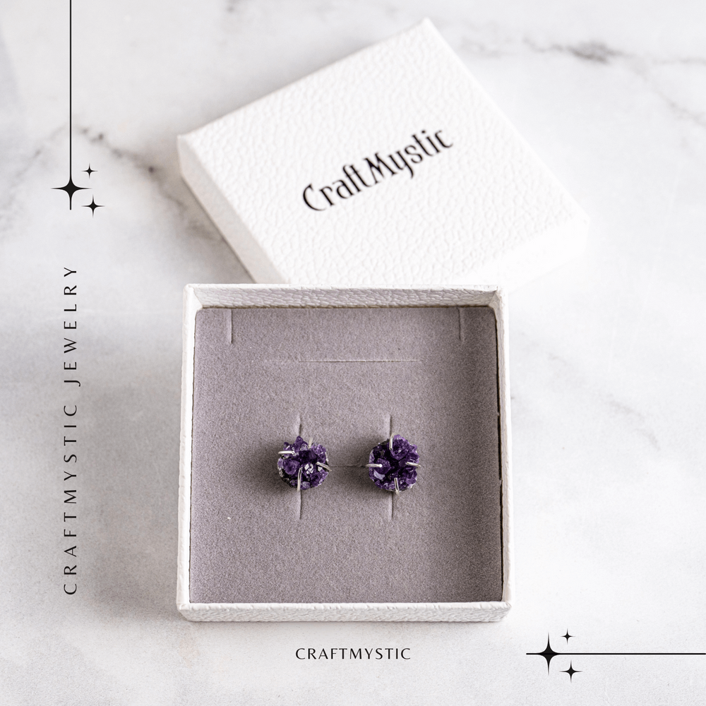 Cercei cu Cristal de Ametist Brut natural, cu textură unică, neșlefuită – fiecare pereche este diferită
