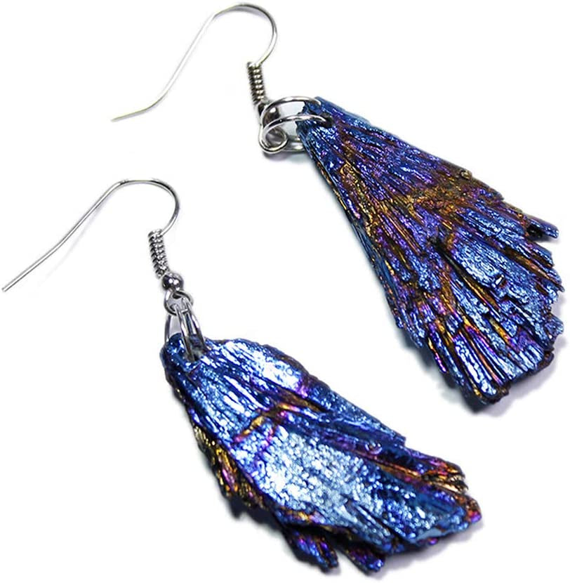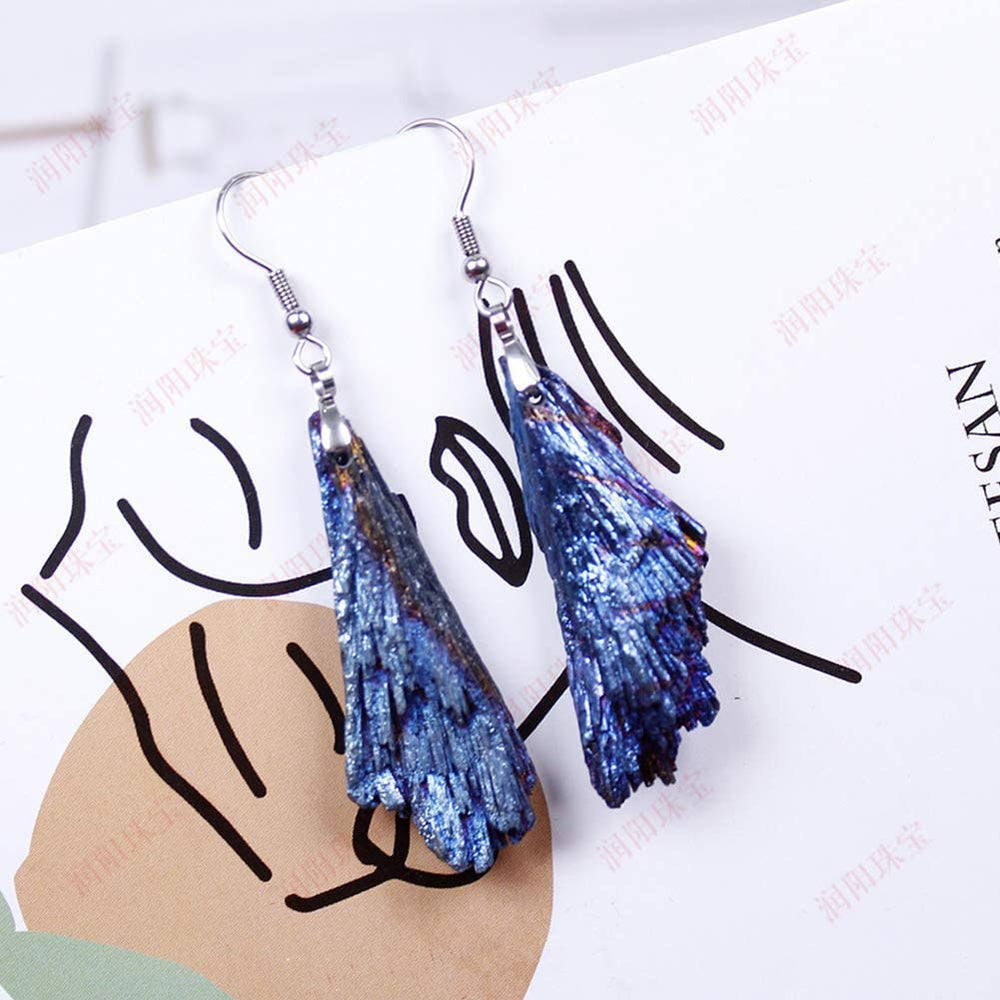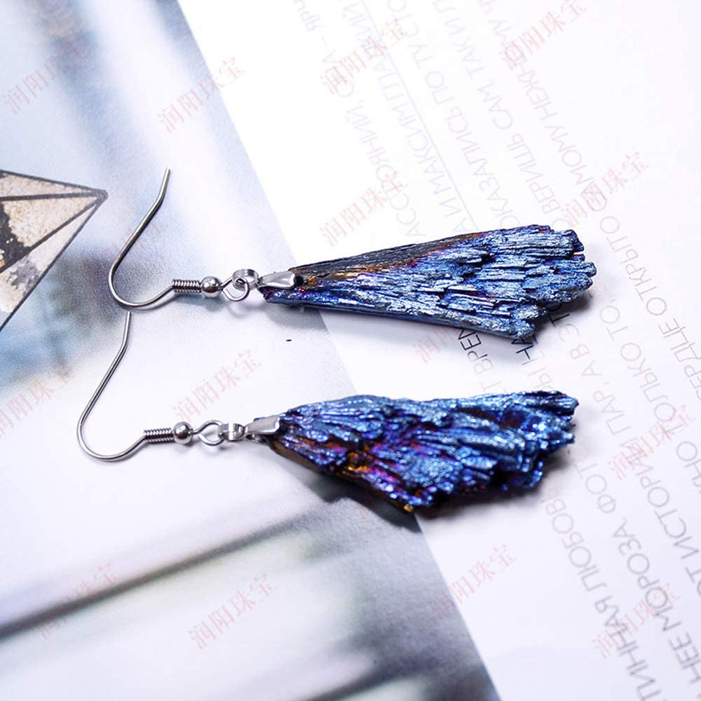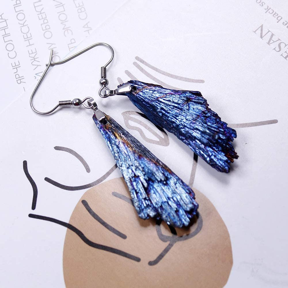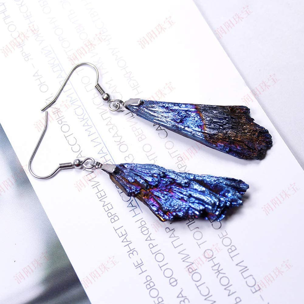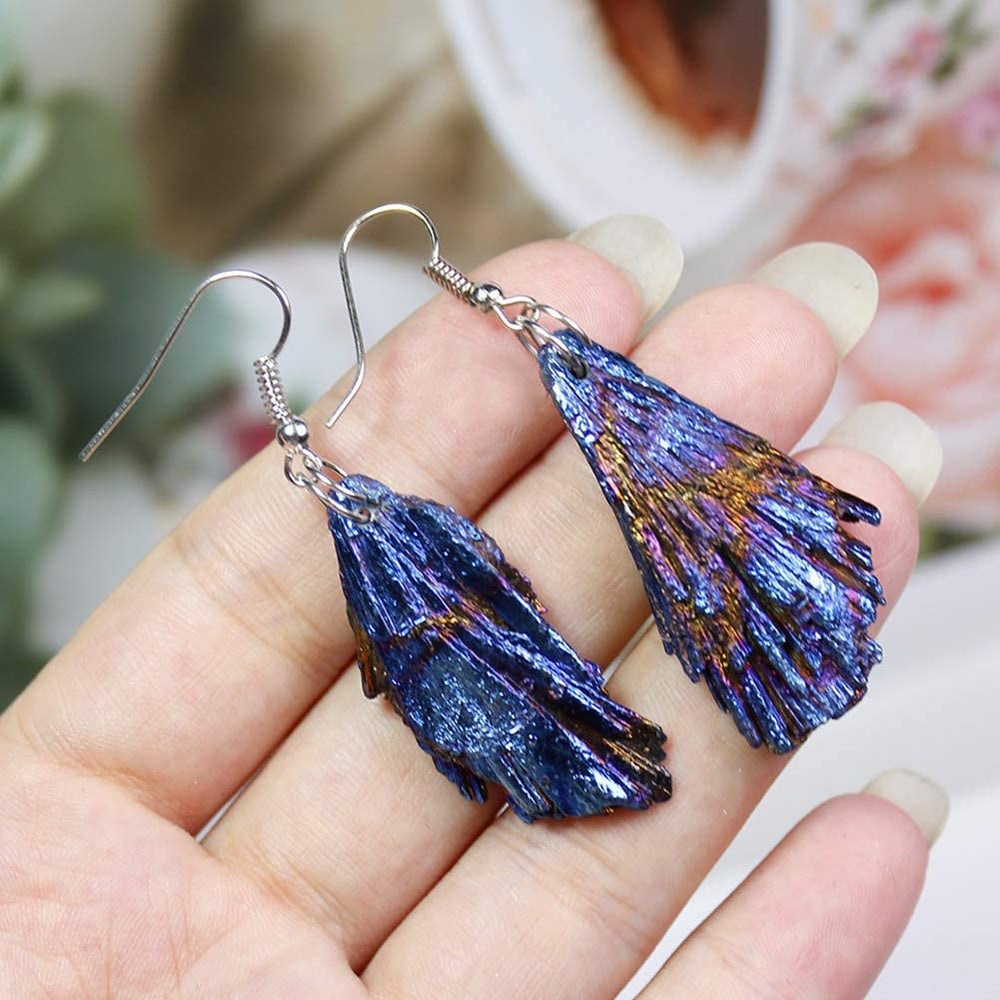 Cercei cu cristal natural din turmalina neagra electroplacat curcubeu si forma de pana 4-5 cm - Bijuterii pentru femei de moda retro