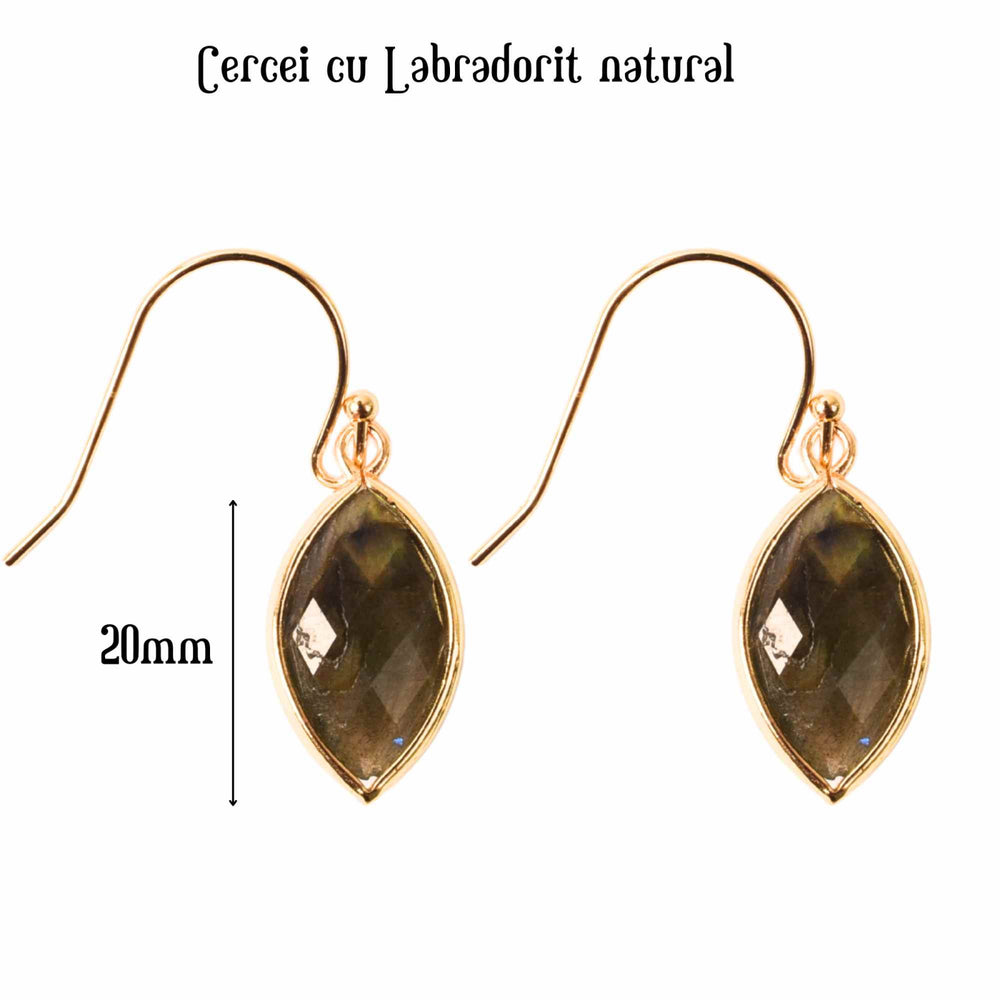 Acesti cercei cu labradorit nu sunt doar un accesoriu de moda, ci si o sursa de mister si putere. Labradoritul, cu irizatiile sale spectaculoase, aduce un plus de stralucire si profunditate oricarei tinute.