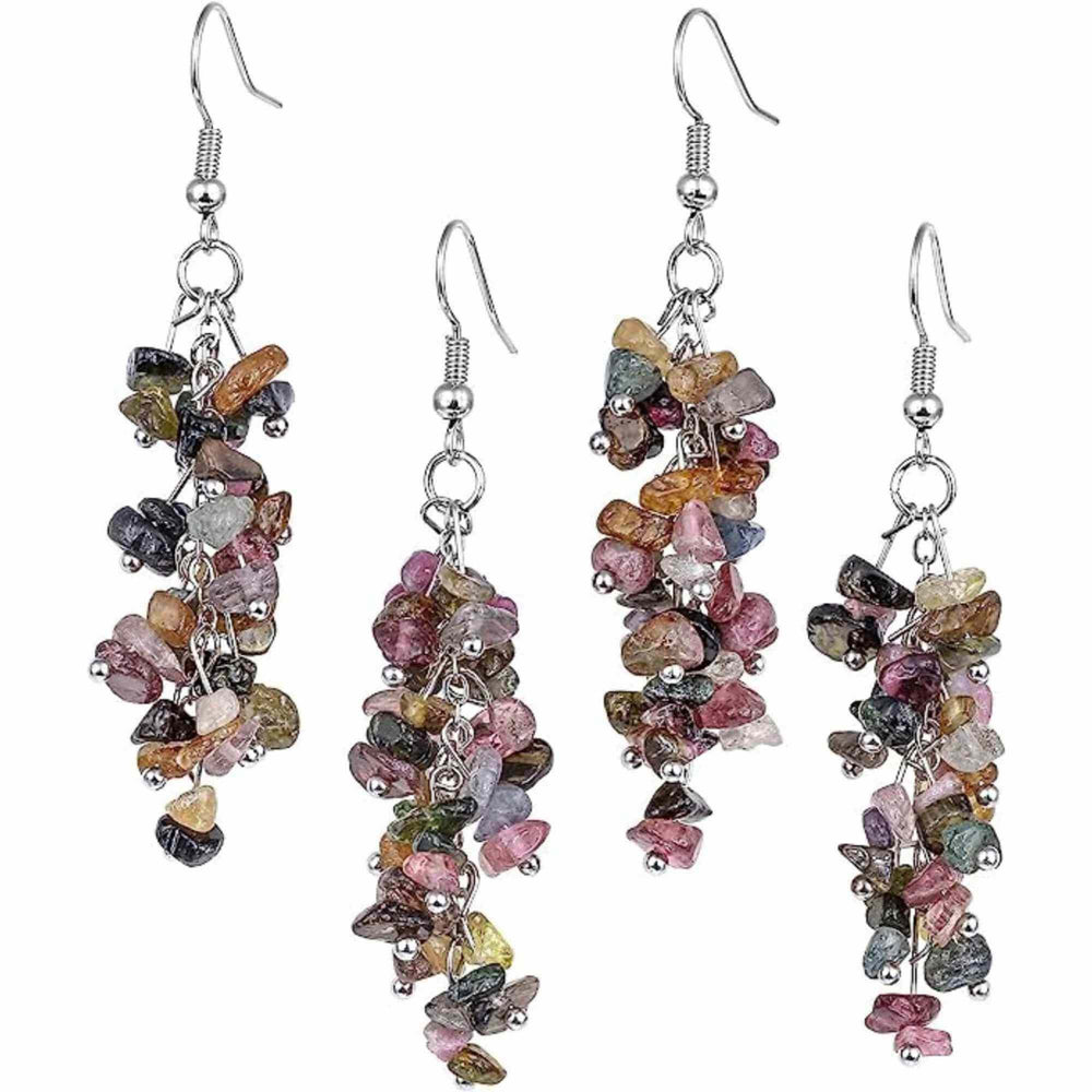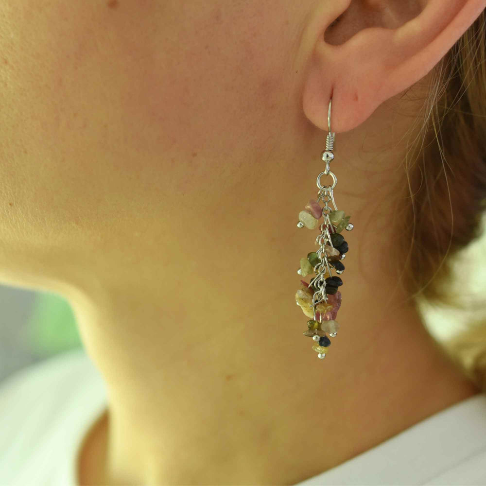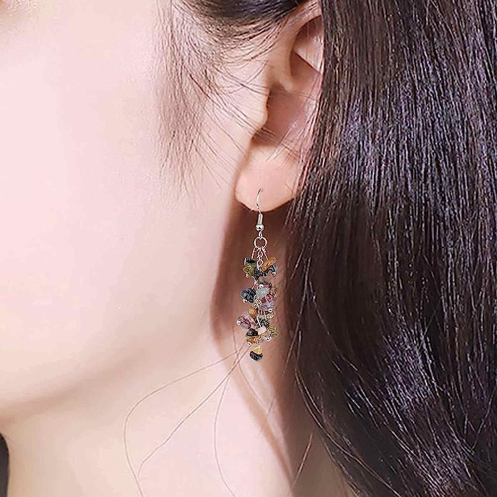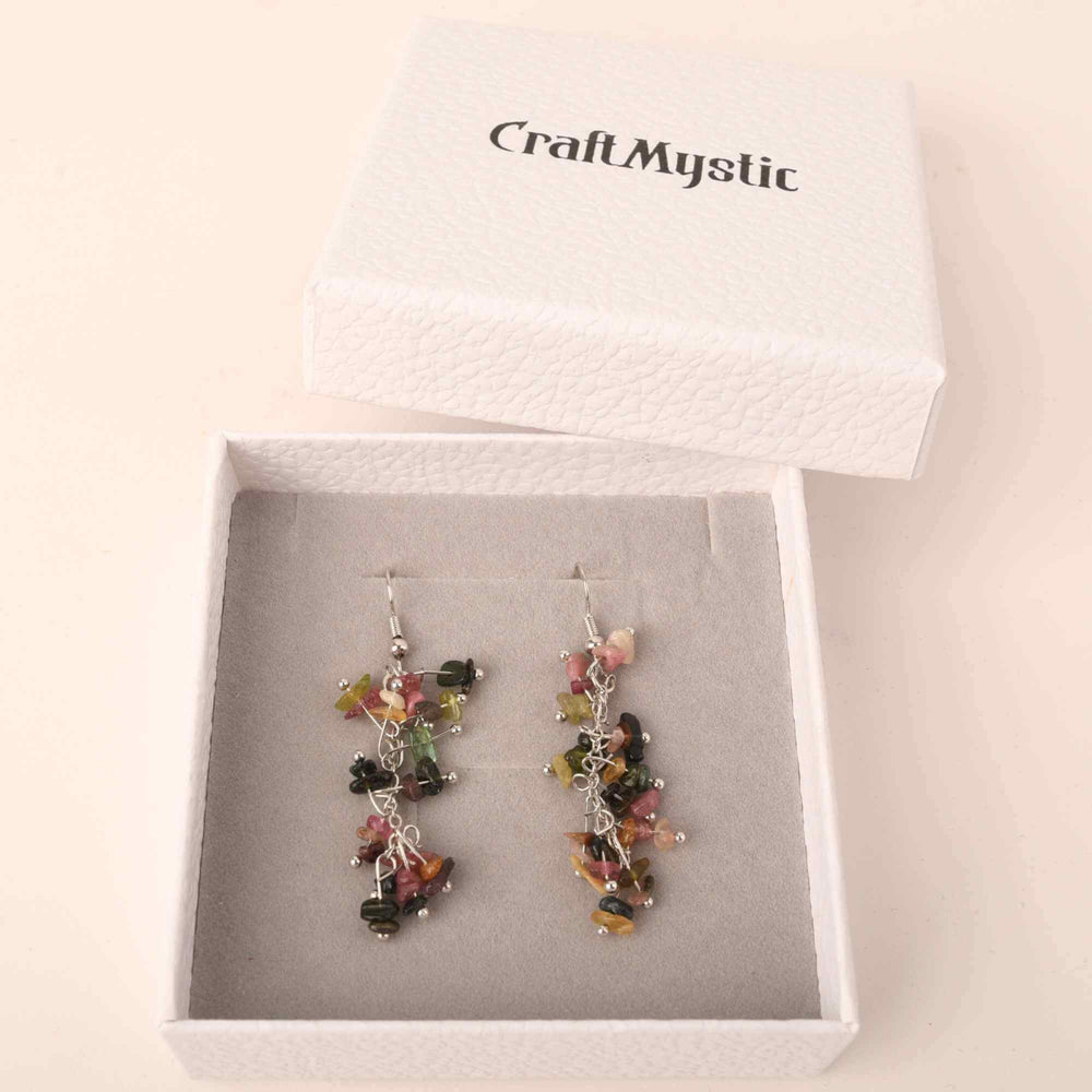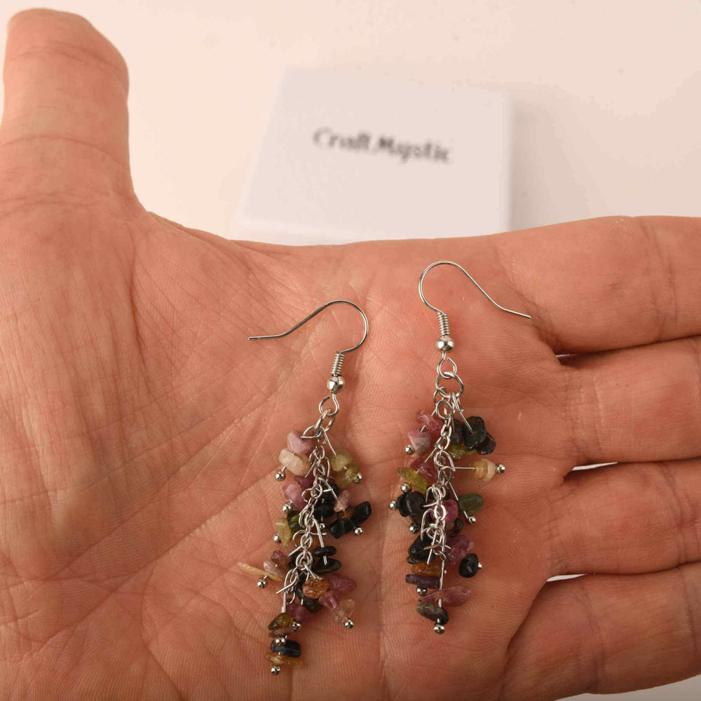 - Cerceii sunt realizati din piatra naturala de turmalina. Designul unic consta in bucati de piatra gaurite si fixate cu sarma, avand un aspect simplu si elegant care se potriveste perfect cu tinuta ta;