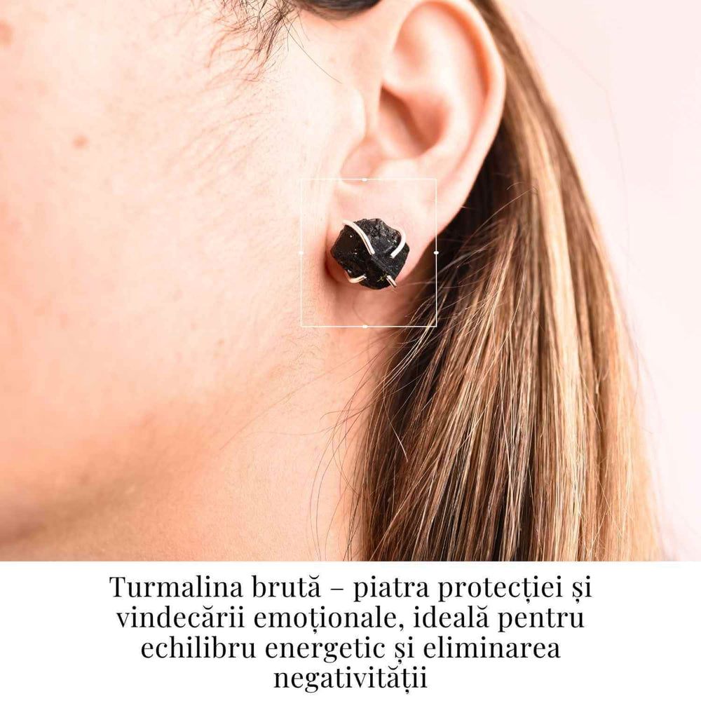 Transformă-ți energia și stilul – adaugă acum acești cercei cu turmalină neagră brută în coșul tău și bucură-te de protecția lor unică!
