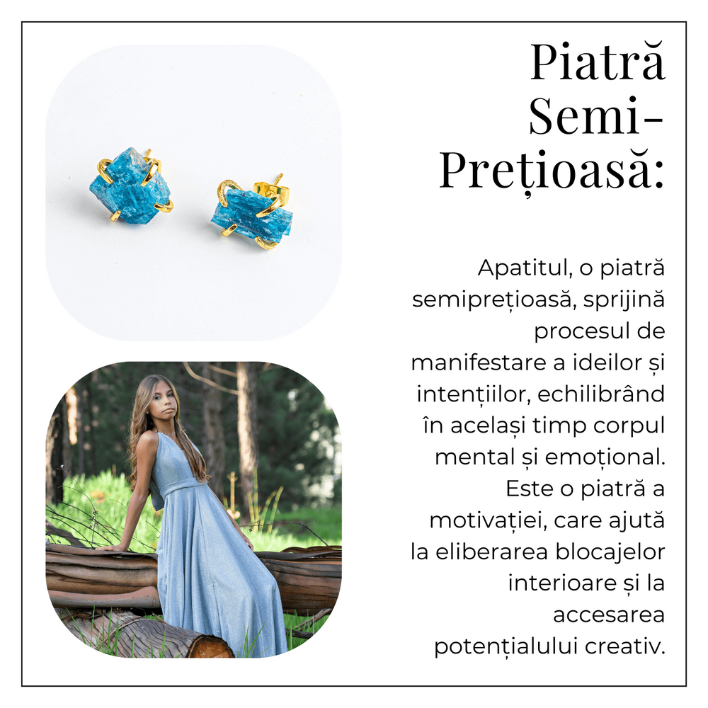 Alege să porți inspirație și claritate în fiecare zi – acești cercei din apatit natural sunt mai mult decât o bijuterie, sunt o ancoră elegantă pentru energia ta creativă.