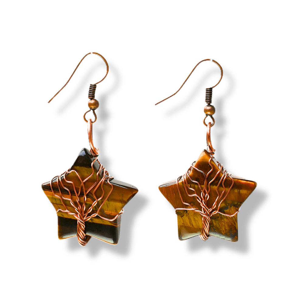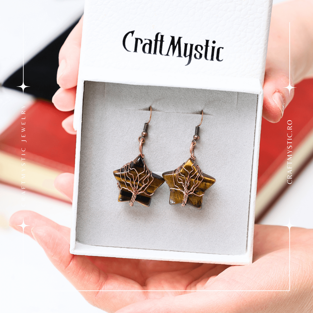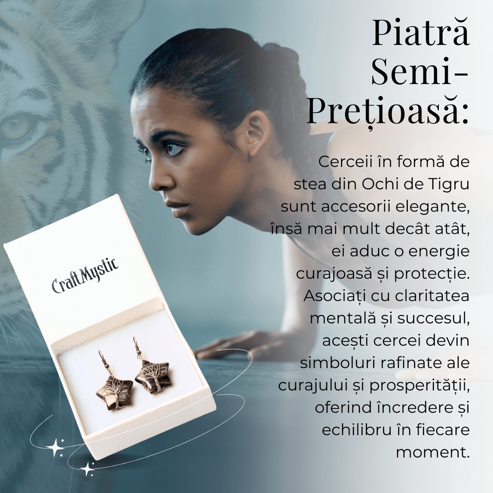 Cercei Eleganti in Forma de Stea cu Piatra Semipretioasa Ochi de Tigru Natural